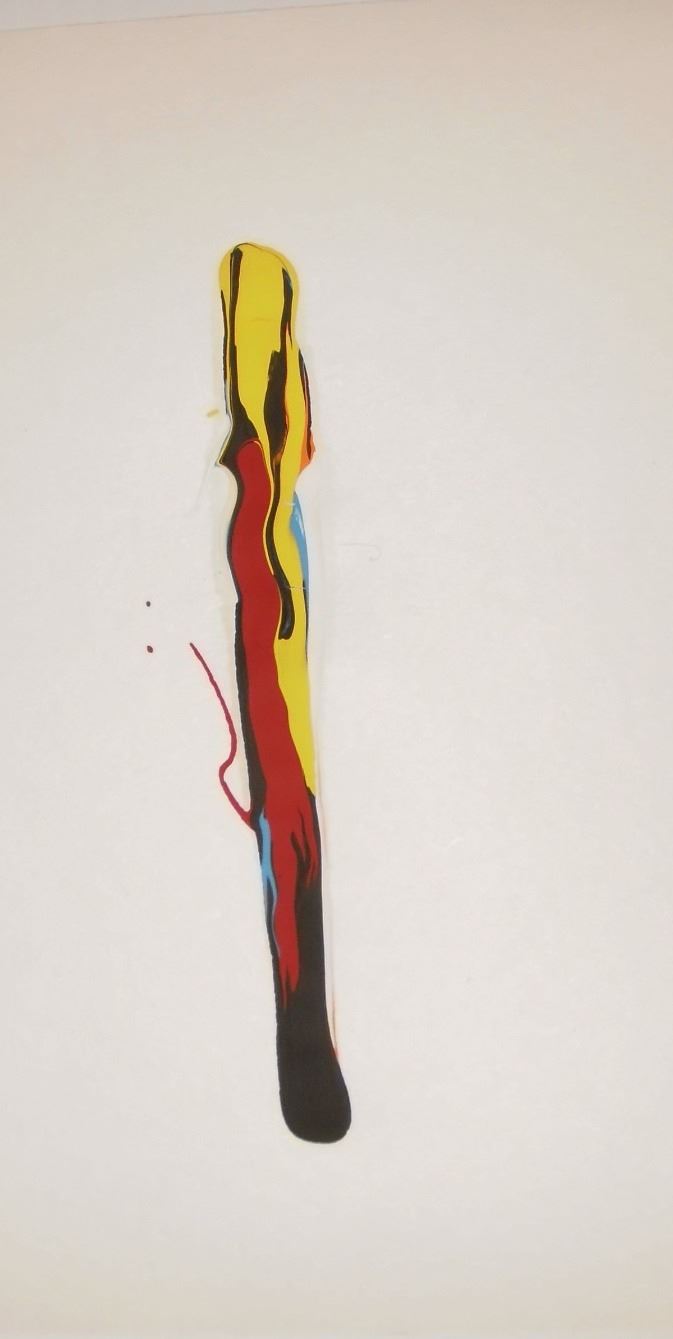 Like a movie of Spaceships, Conceptual art REVEALED for you to discover many times in this abstraction somewhat realistic being a Person #794 and water as 2 LAKES : Blue Lakes #794, is this original MINIATURE on art paper-carton ap. 8 1/2 x 6" painting of Fun by Artiste LangdonArt, see also the other views of it, as too like a Spaceship as Camouflaged #794, and maybe of Planet Camouflaged secrets also #794 too OTHER SHAPE to guess for your