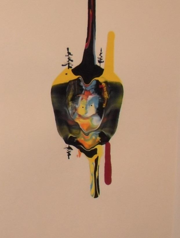 Original small painting on art paper-carton ap. 8 1/4 x 6 inches Tree House #801Ab fun CREATED by Artiste LangdonArt and / or is a Spaceship or a Planet ? See also it's OTHER secret view by #801AA