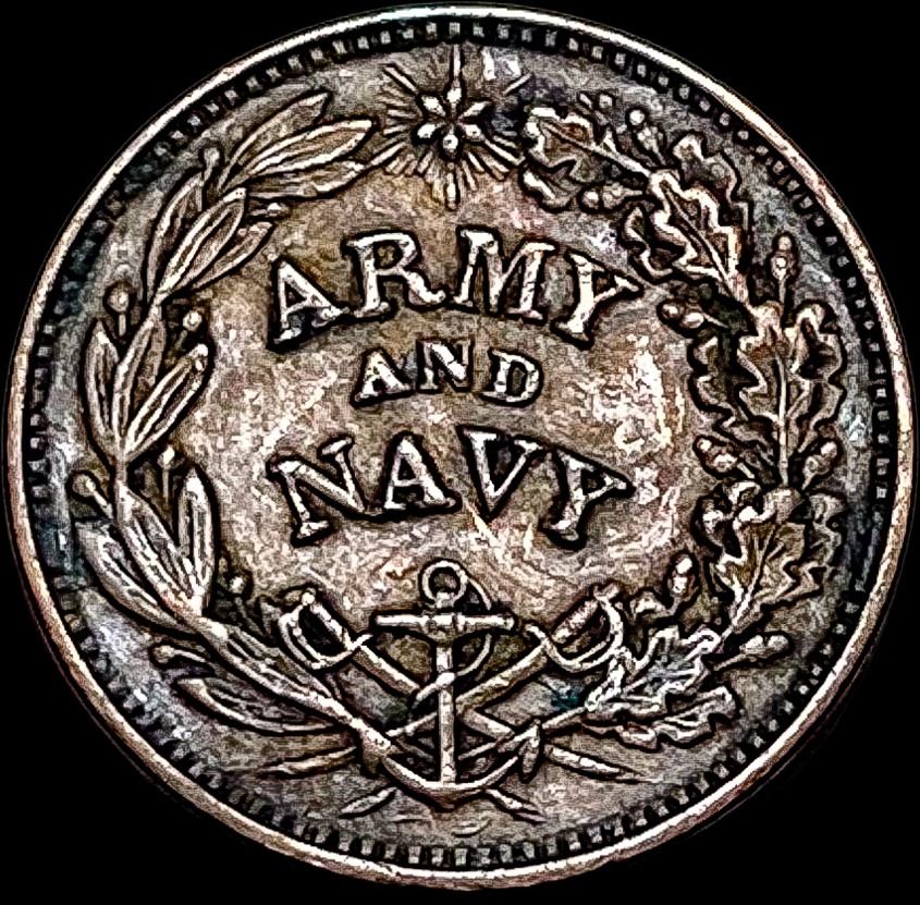 This is a Civil War token "Army and Navy" type circa 1863. NEARLY UNCIRCULATED