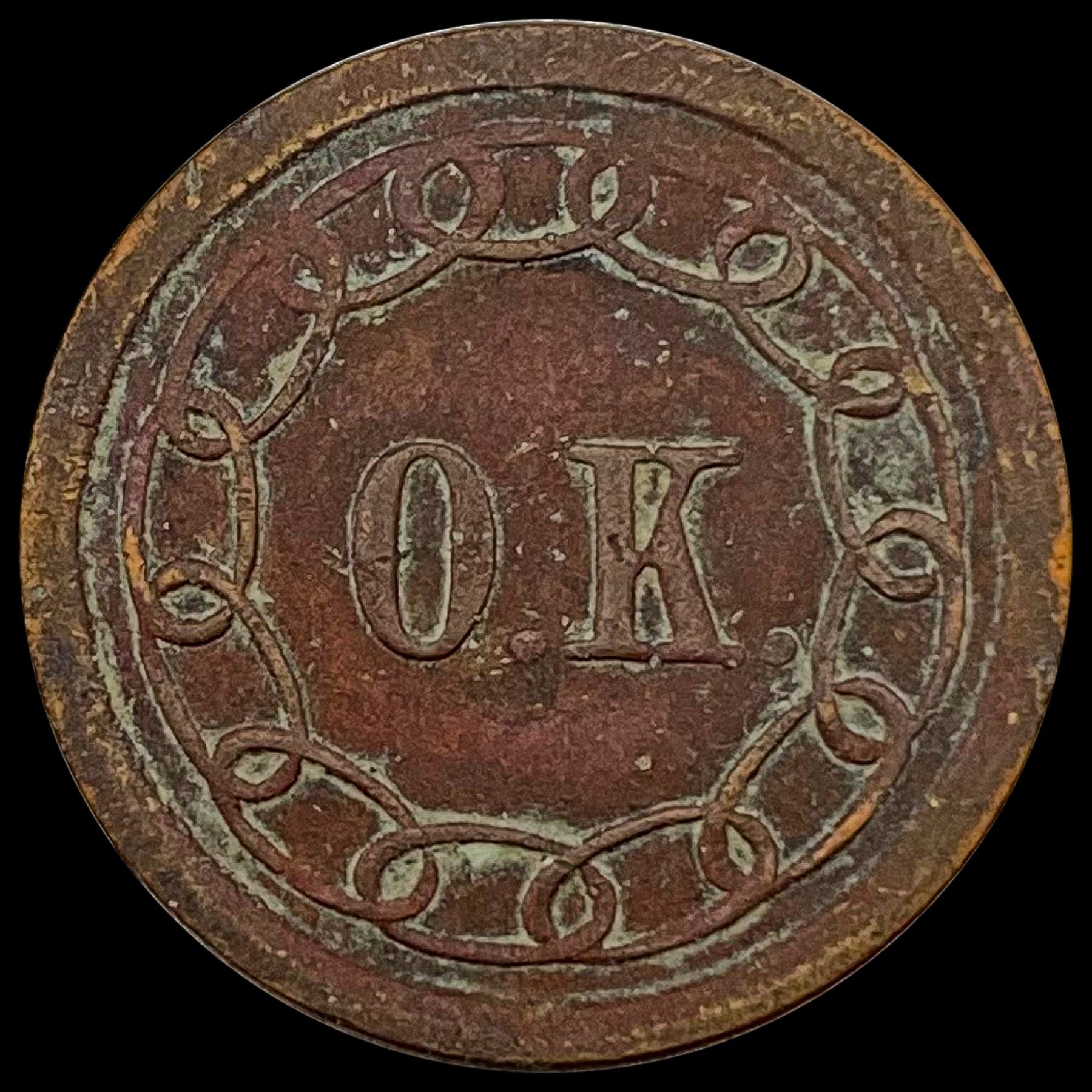 This is a Civil War token with "O.K." an CLOSELY UNCIRCULATED