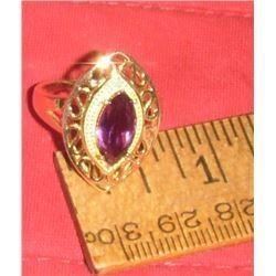Outstanding and for you or give this BRILLIANT With gift box new ring .925 silver stamped with 14 Kt gold plating 12mm x 6mm marquise cut 2.06 carat amethyst quartz framed by 2 .02 tcw diamonds ring