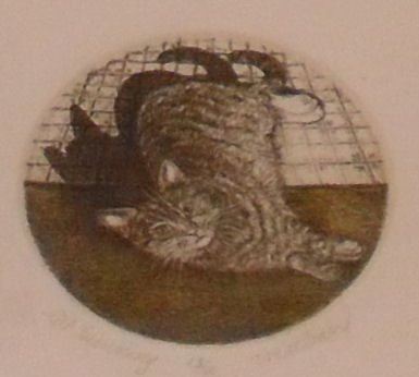 Cat etching by the "intaglio" method which is gravure on metal artistic style by Vicky Maclean born in USA living in Nova Scotia in Canada :
