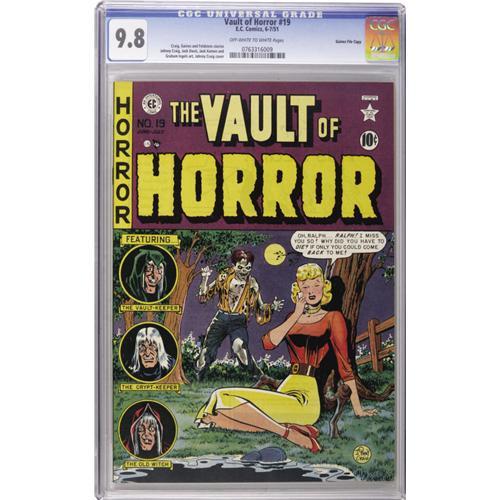 This is one of the prettiest Gaines File Copies we've ever seen -- and that's saying something! Johnny Craig typically weaves horror, "good girl" and irony into the cover, while he and pals Jack Davis, Jack Kamen, and Graham Ingels provide interior art. Overstreet 2006 NM- 9.2 value = $700. CGC census 12/06: 4 in 9.8, none higher.<BR><BR><b>Shipping:</b> Slabbed Comic (<a target="_blank" href="http://www.heritageauctions.com/common/shipping.php">view shipping information</a>)