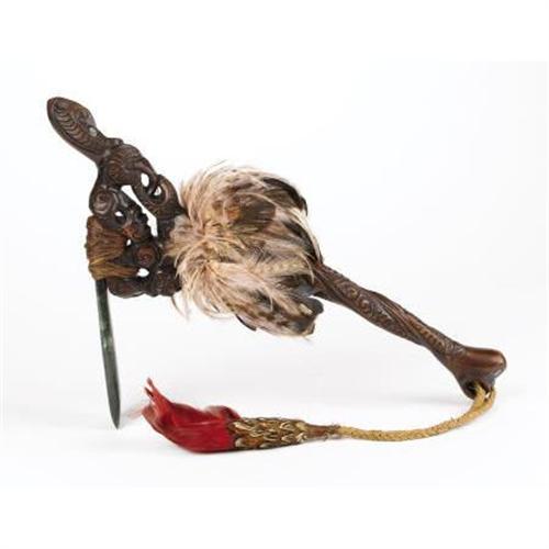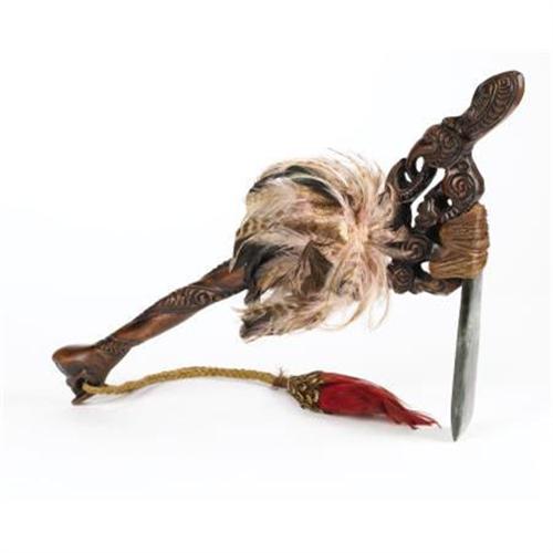 <B>Ceremonial Maori Adze<BR></B></I>Maori<BR>Early Twentieth Century<BR>Wood, fiber, shells, Cassowary and other feathers, metal<BR><BR><BR> <BR><BR><b>Shipping:</b> Requires 3rd Party Shipping (<a target="_blank" href="http://www.heritageauctions.com/common/shipping.php">view shipping information</a>)