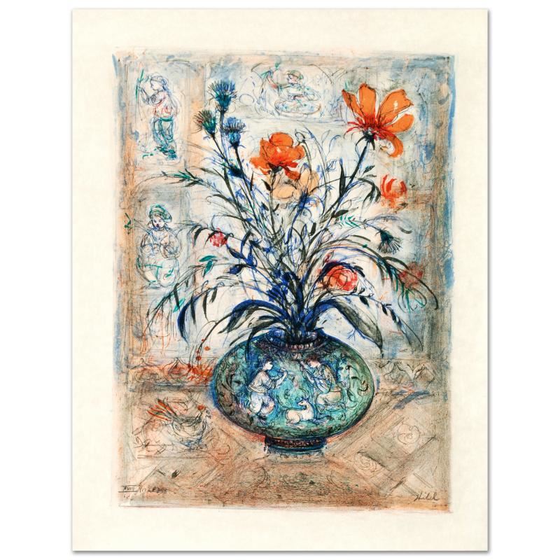 "Thistle Rose and a Day Lily" is a limited edition lithograph on rice paper, numbered and hand signed by Edna Hibel (1917-2014). Includes Certificate of Authenticity! Measures approx. 19.5" x 25.5" (with border), 15.5" x 21.5" (image).