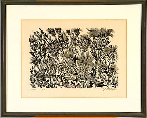 Frasconi, Antonio (American 1919-) black & white woodblock, signed, ed. 25 and dated 1965, 7 1/2" by 11".