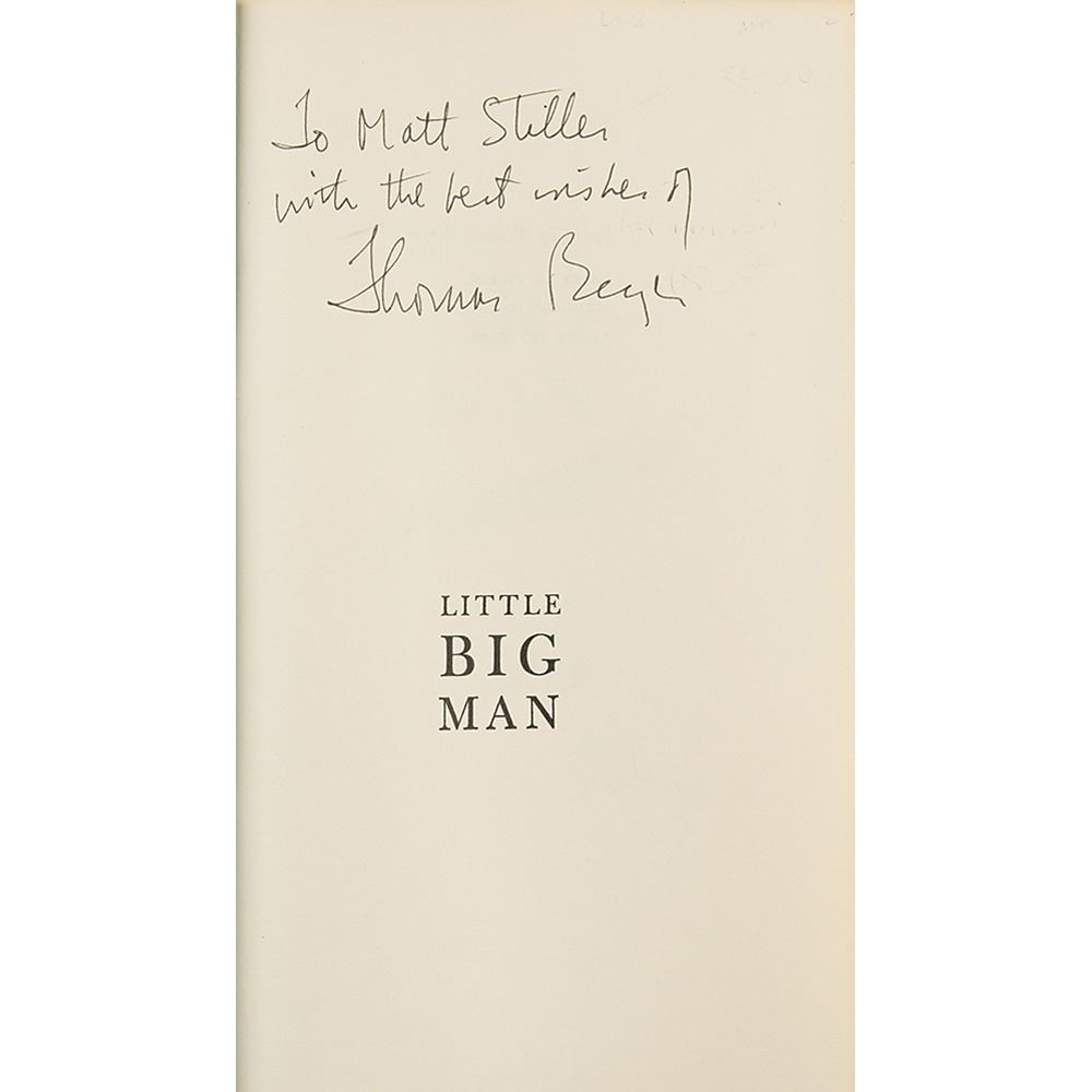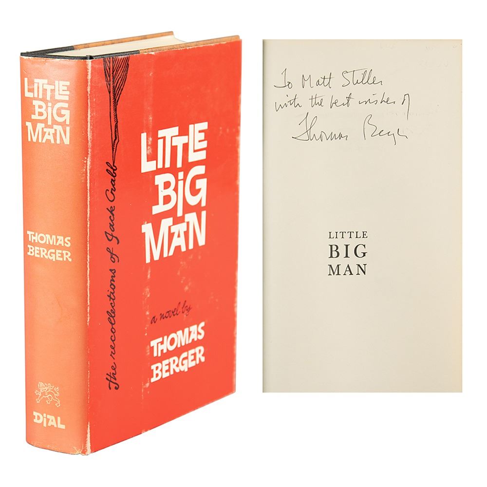 Signed book: Little Big Man. First edition. NY: The Dial Press, 1964. Hardcover with dust jacket, 6 x 8.5, 440 pages. Signed and inscribed on the half-title page in black ballpoint by Thomas Berger. In fine condition, with light wear and sunning to the dust jacket's spine.