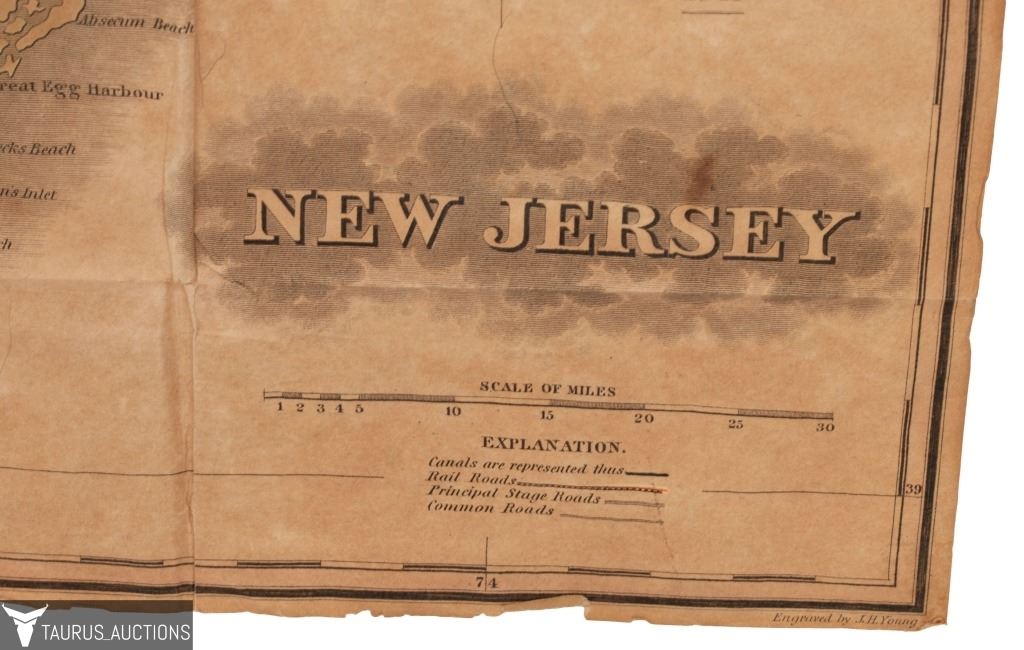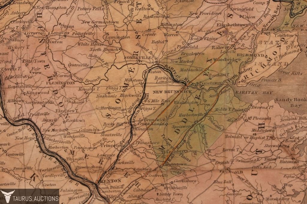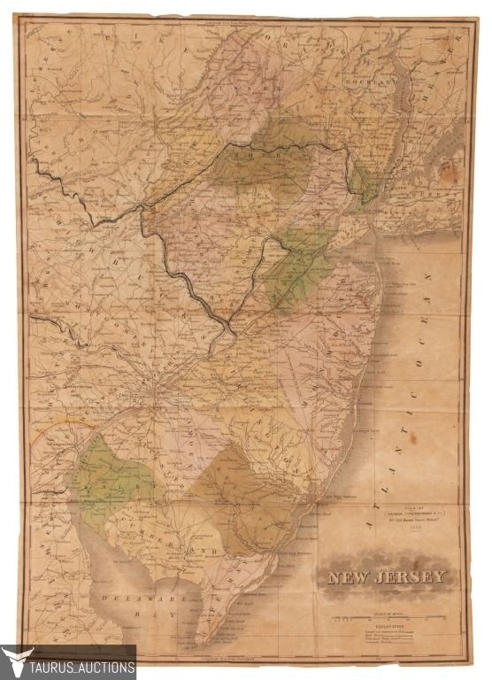 Item/Description: Antique Thomas Cowperthwaite & Co., Map of New Jersey. An atlas map published in Pennsylvania. Hand-colored. Detail of cities and towns, rivers, rail lines and topographic information. Decorative border. ( books, paper, magazines)