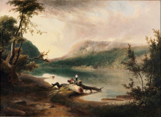 Artist: Thomas Doughty - Title: Delaware Water Gap - Medium: Fine Art Giclee on Canvas - Image Size: Approximately 23.25 inches x 32 inches - Framed: Unframed on Unstretched Canvas - Biography: Doughty was largely self-trained, and he relied heavily on copying European landscapes which he saw in collections such as that of his early patron Robert Gilmor, Jr., of Baltimore. From these he learned the established conventions of Continental landscape painting, which he then applied to American scenes. He made sketching trips to record details for his paintings, which came to be much admired for their comparative realism and truth to nature. Doughty was thus one of the founders of the native American landscape school, and his works from the 1820s recorded the beauties of the scenery of the eastern United States.