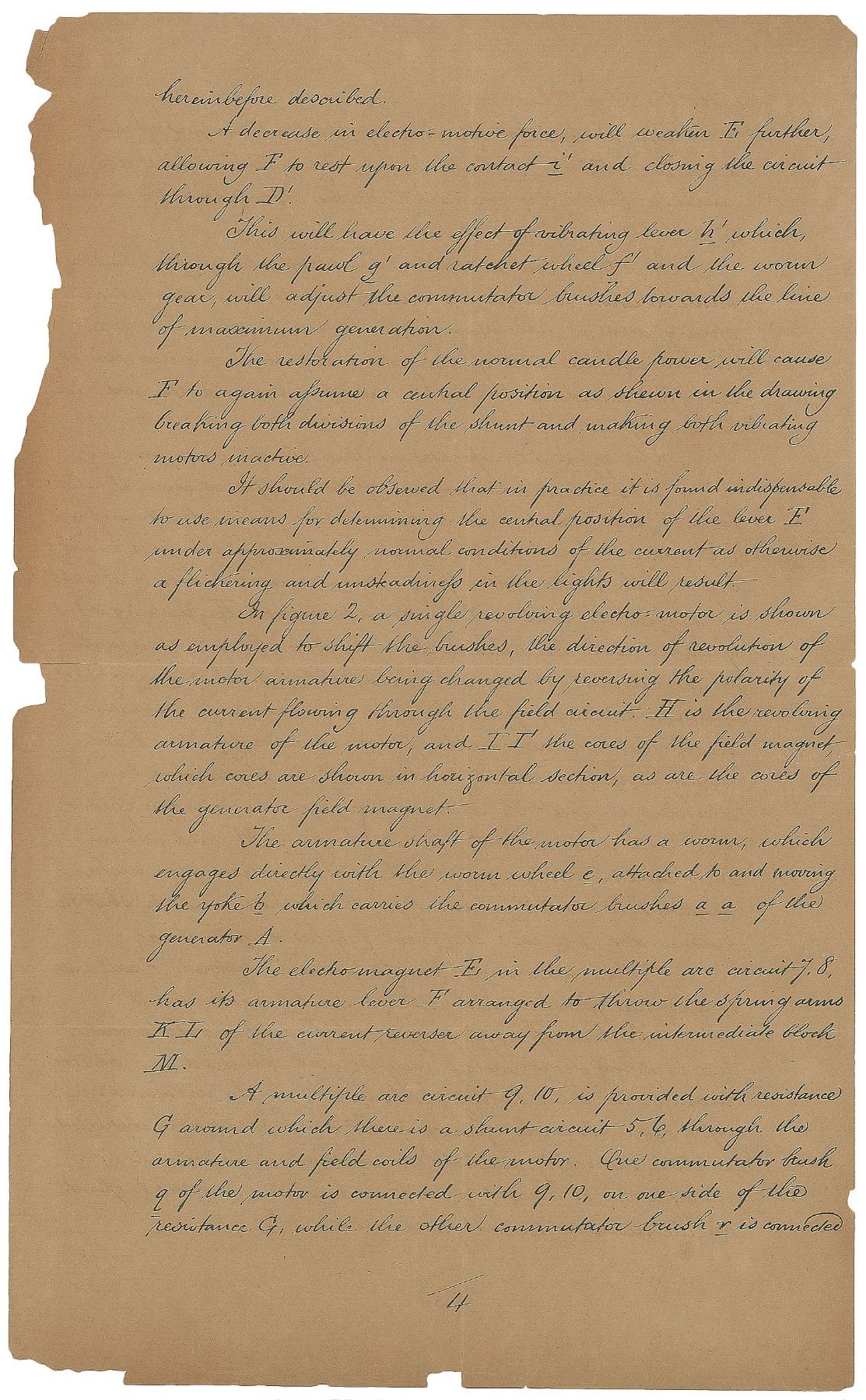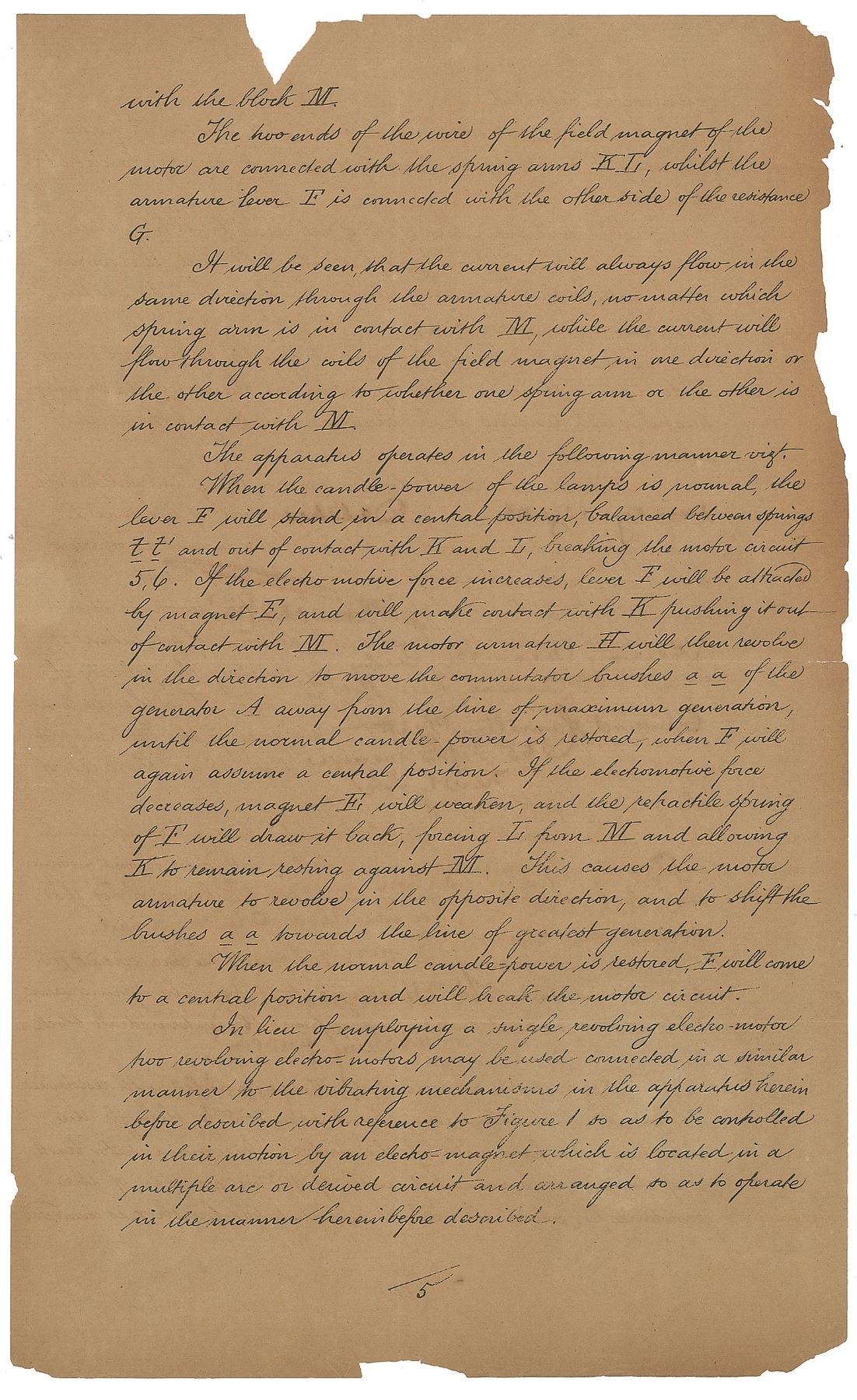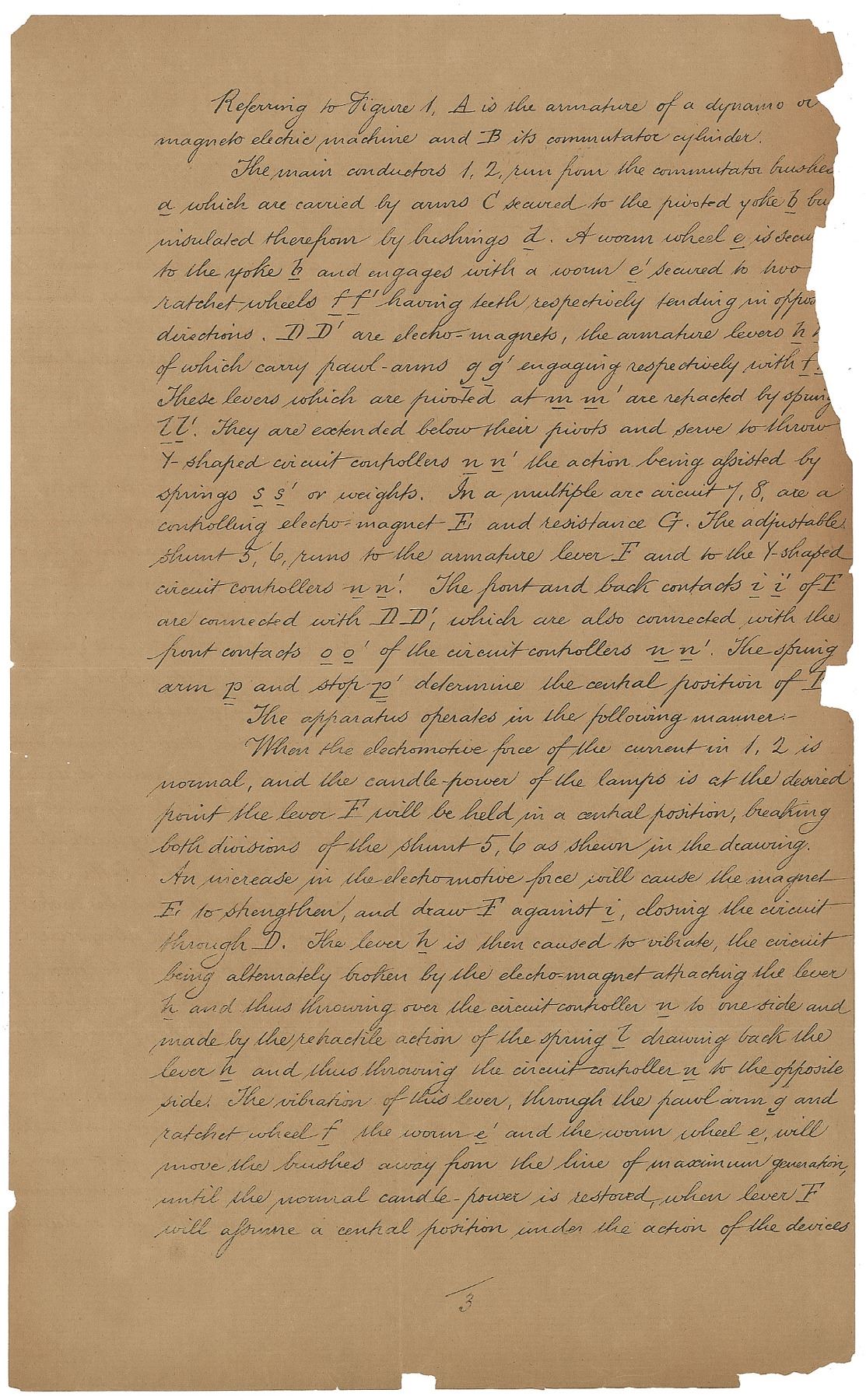 Tremendous partly printed DS, signed “Thomas Alva Edison,” six total pages, 7.75 x 12.75, October 28, 1882. A patent application for the “Improvements in means for regulating the generative capacity of dynamo or magneto electric machines,” which reads, in part: “The said Invention has for its object providing simple and efficient means for regulating the generative capacity of dynamo or magneto electric machines supplying lamps or other translating devices located in derived or multiple arc circuits, by acting upon the commutator brushes or springs to move them away from and towards the points of greatest difference in potential, or most effective generation. This object is accomplished by mechanism hereinafter described which is both actuated and controlled by the current generated and is connected with the commutator brushes so as [to] move them together in one or the other direction. The electric [current] to this mechanism supplied by the current generated are made and broken by an electro magnet also energized by the current generated by the machine.” Boldly signed at the conclusion by Edison with his trademark ‘umbrella’ signature, and countersigned by Henry Wessells Seely, Edward Hamilton Pyatt, and notarized by William Henry Meadowcroft. Orange New York County notary seal remains affixed to lower left corner. Also includes a pair of printed mechanical diagrams with a stapled partly printed document relating to the above patent, also dated October 28, 1882, and signed on behalf of Edison in a secretarial hand. In very good to fine condition, with splitting to intersecting folds, and some paper loss to the edges of the fragile sheets.