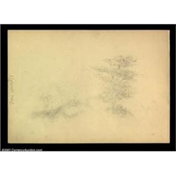 Thomas F. Morris Original Artwork. Another pencil drawing by Morris, this a nicely done rendition of a country scene with what appears to be a tree as its central motif. Drawn on a piece of thick paper that measures approximately 10" by 7". Important notice: We expect to be auctioning lots at the rate of 200-250 per hour. Sometimes eBay Premier live bid software cannot keep up with that pace, so we strongly recommend that you place a realistic proxy bid now as insurance to avoid disappointment. Also please note that all Heritage/CAA lots purchased through eBay Premier carry a 20% Buyer's Premium. Please make sure you read the Terms and Conditions.