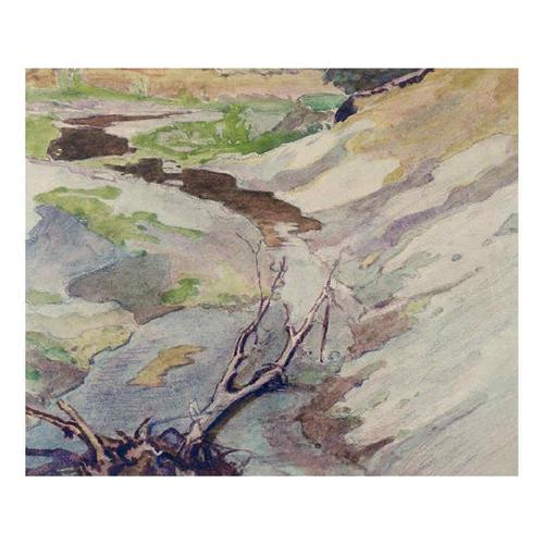 Canadian CPE, CSGA, CSPWC, OSA [1875-1955] STREAM AND BANKS watercolour on paper 10.5 x 12.5 in. (26.7 x 31.8 cm) initialed