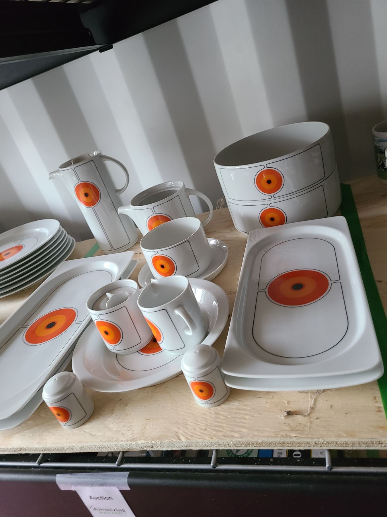 Serving pieces for lot 556. Tea Pot is missing the lid Bring packing supplies. Pickup at 10 am.