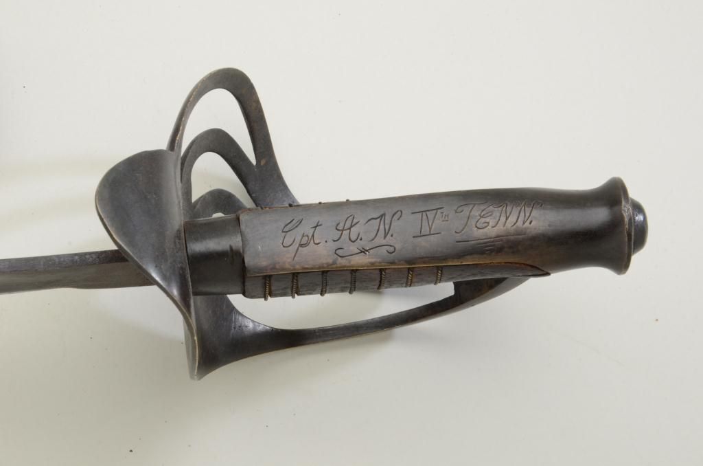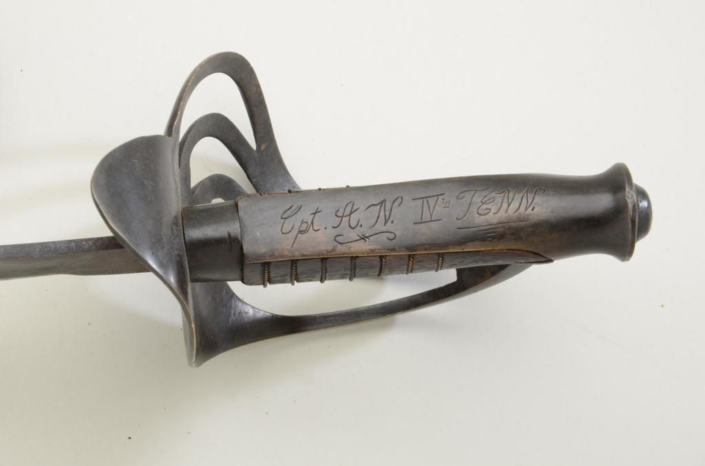 Thomas Griswold & Co. spuriously marked copy of Confederate saber, artificially aged, circa 1960s to '70s. Also, spurious inscription "Cpt. A. N. IVTH tenn". Nice for display or re-enactment. Est.: $200-$400