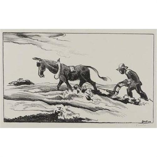 8120 Thomas Hart Benton (1889-1975) Lithograph "Plowing it Under" 1934 Edition 250 AAA print Pencil signed lower right Image 8" x 13 5/16" Paper 11 1/2" x 16"