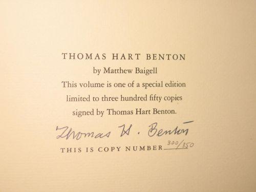 Signed Thomas Hart Benton Leather bound book by Matthew Baigell, ISBN 0-8109-0132-3, 12 x 13 inches