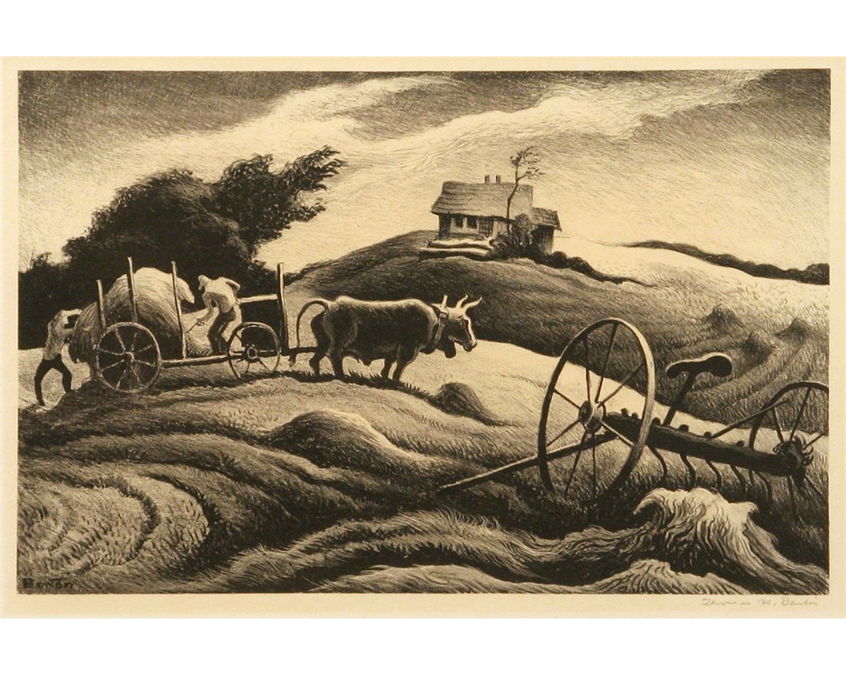 Thomas Hart Benton (1889 - 1975). New England Farm. 9" x 13.872" lithograph. Pencil signed lower margin: Thomas H. Benton. Edition of 300, 1951, FATH 76.