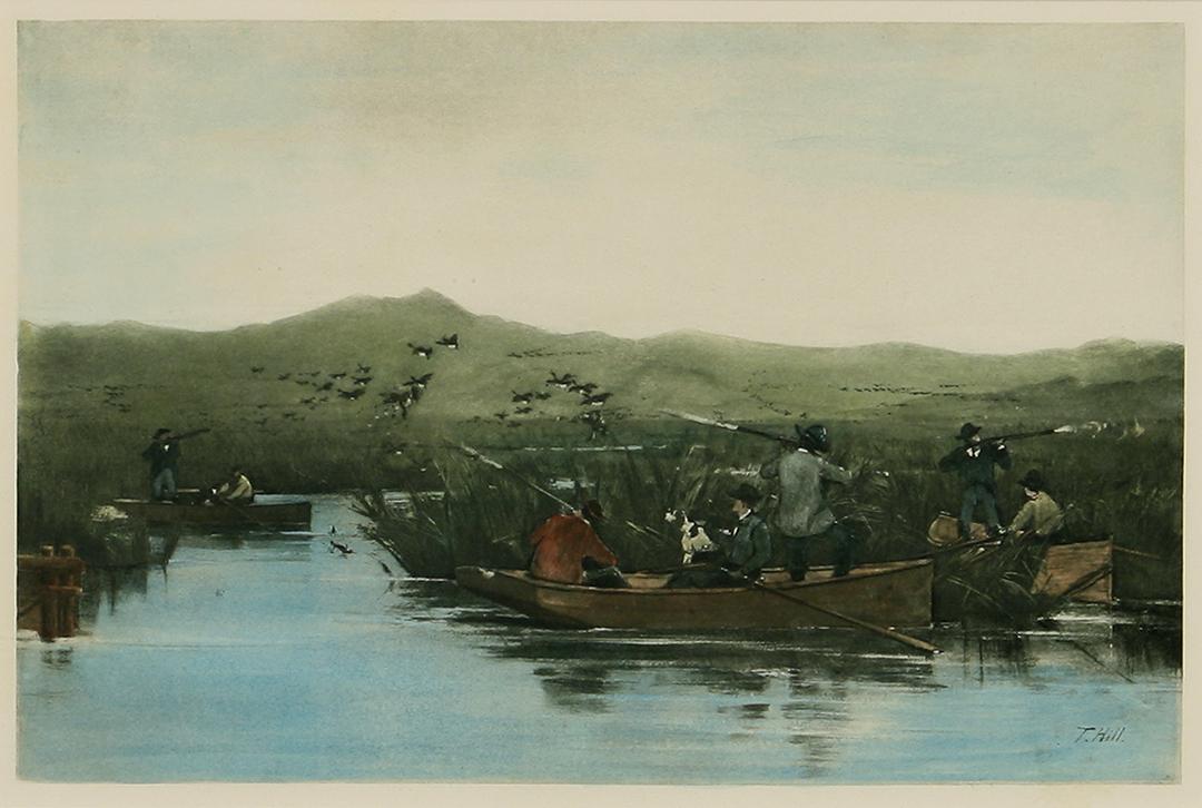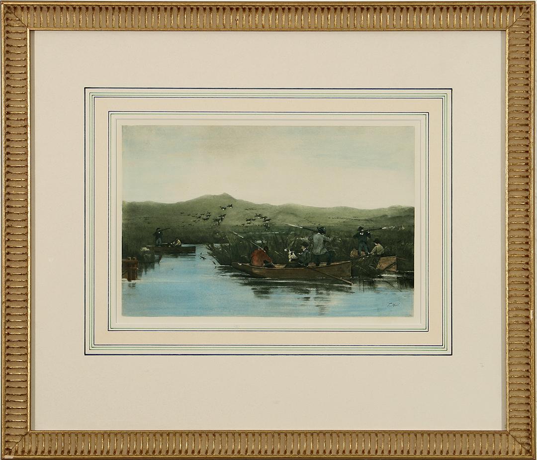 Thomas Hill (American, 19th Century) Photogravure, "Duck Hunting on the Lake", c. 1890