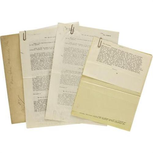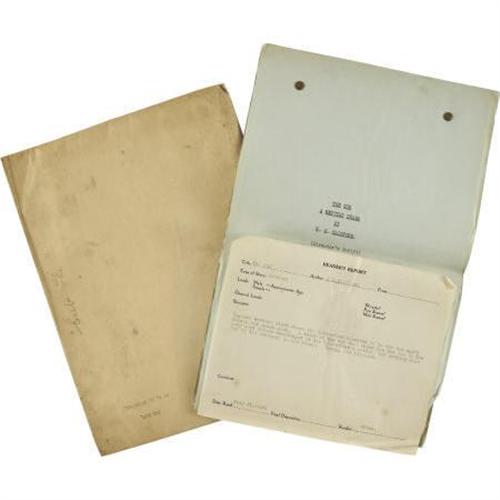 <B>Original Film Treatments and Shooting Scripts by Nina Wilcox Putnam and Others from Triangle Motion Picture Company, 1915-18 </B></I> A total of 17 original story treatments and two shooting scripts from archives of Triangle Motion Picture Company (formed by Thomas H. Ince, D.W. Griffith, and Mack Sennett), including a shooting script by Nina Wilcox Putnam (co-author of the story for the 1932 Karloff classic <I>The Mummy</B></I> and the 1924 stage version of <I>Dracula</B></I>). Also included is a story treatment by Harold Vickers for the 1916 silent <I>The Men She Married</B></I> (starring Montagu Love and Gail Kane), and a shooting script for the unproduced film <I>The Cub,</B></I> written by William H. Clifford. Includes additional story treatments from noted writers C. Gardner Sullivan, Julien Josephson, Elaine Sterne Carrington, Robert Shirley, James Keene, and Monte M. Katterjohn. In overall Very Good condition with center creasing, moderate age-toning, minor nicks to borders, and rusting from original clips. Each stored in original, labeled filing envelopes from Triangle archives. <I>From the Thomas H. Ince Archives.</B></I><BR><BR><b>Shipping:</b> Books & Catalogs (<a target="_blank" href="http://www.heritageauctions.com/common/shipping.php">view shipping information</a>)
