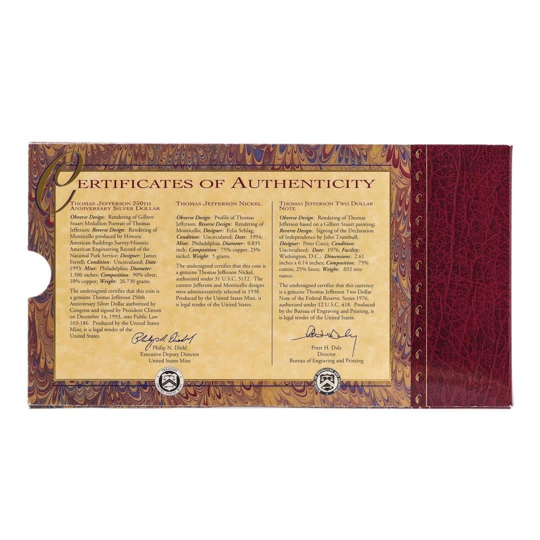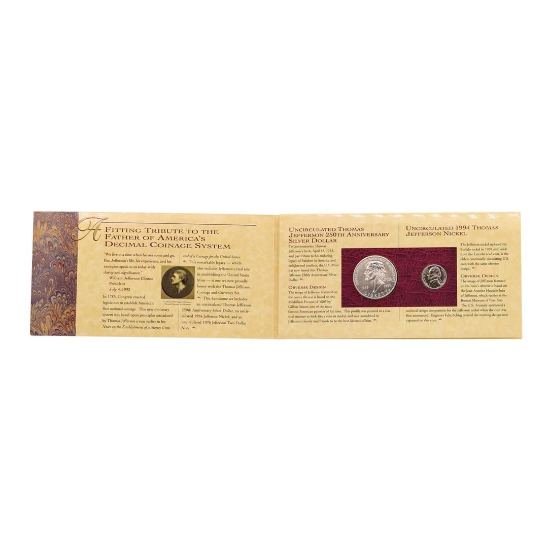 One Thomas Jefferson Coinage & Currency Set.