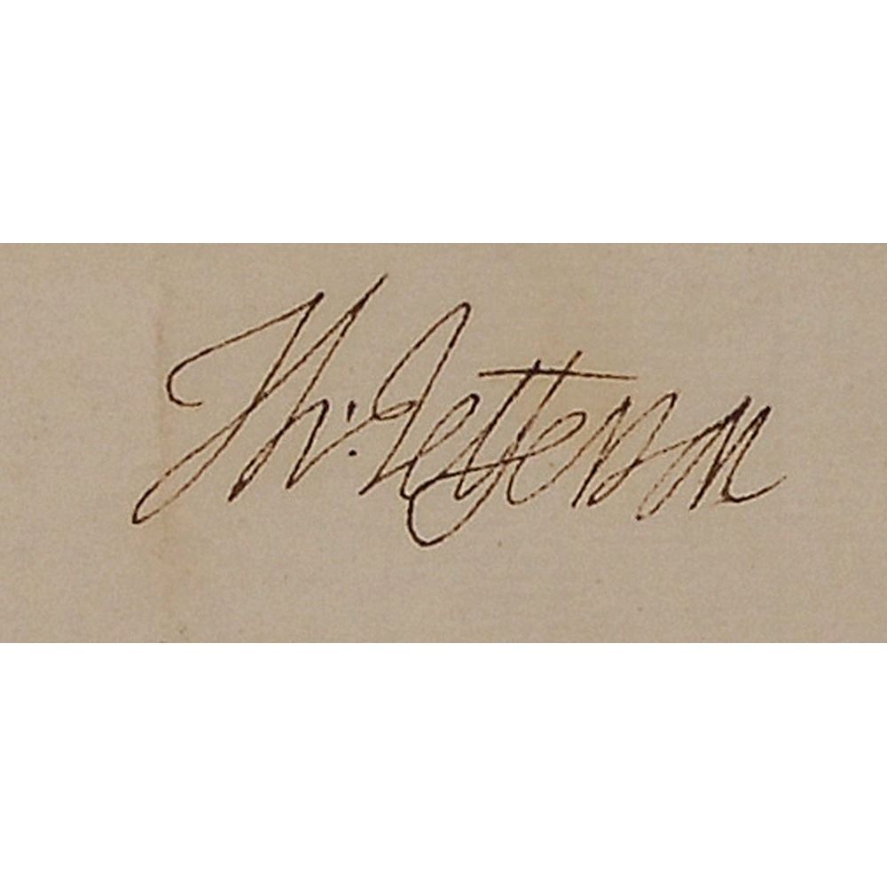 Jefferson was serving as Washington's secretary of state when he signed this act granting pensions to two Revolutionary War veterans, David Cook and Thomas Campbell. Cook had been wounded at the Battle of Monmouth on June 27, 1778 in Monmouth County, New Jersey. During the war, the Continental Congress recruited soldiers using the nation's first pension law, which promised half pay for life in cases of loss of limb or other serious disability. The national government did not have the funds to make these payments, however, and the duty was passed on to the states. In 1789, Congress assumed the responsibility for veterans benefits when it passed the first federal pension legislation. A rare and desirable Act of Congress signed by a founding father.