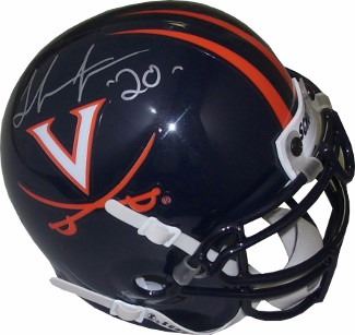 Through four years with the Virginia Cavaliers, Thomas Jones left his mark on the record books of both the team and the Atlantic Coast Conference. He ended his career at Virginia with eight conference and fifteen team records, including finishing as the Cavalier’s all-time rushing leader with 3,998 yards, eclipsing the previous mark of 3,389 yards set by Tiki Barber. He finished his college career with 4,698 all-purpose yards, fourth all-time at Virginia. Thomas Jones has hand autographed this Virginia Cavaliers Authentic Schutt mini helmet. GTSM Hologram and Certificate of Authenticity from Athlon Sports.