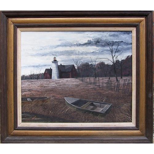 <tr><td>Title:Thomas Kerry Framed Oil Painting, Lighthouse </td></tr>