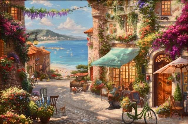 "Italian Cafe, Romantic Moments" 7/150 EP canvas, 18" x 27" with COA