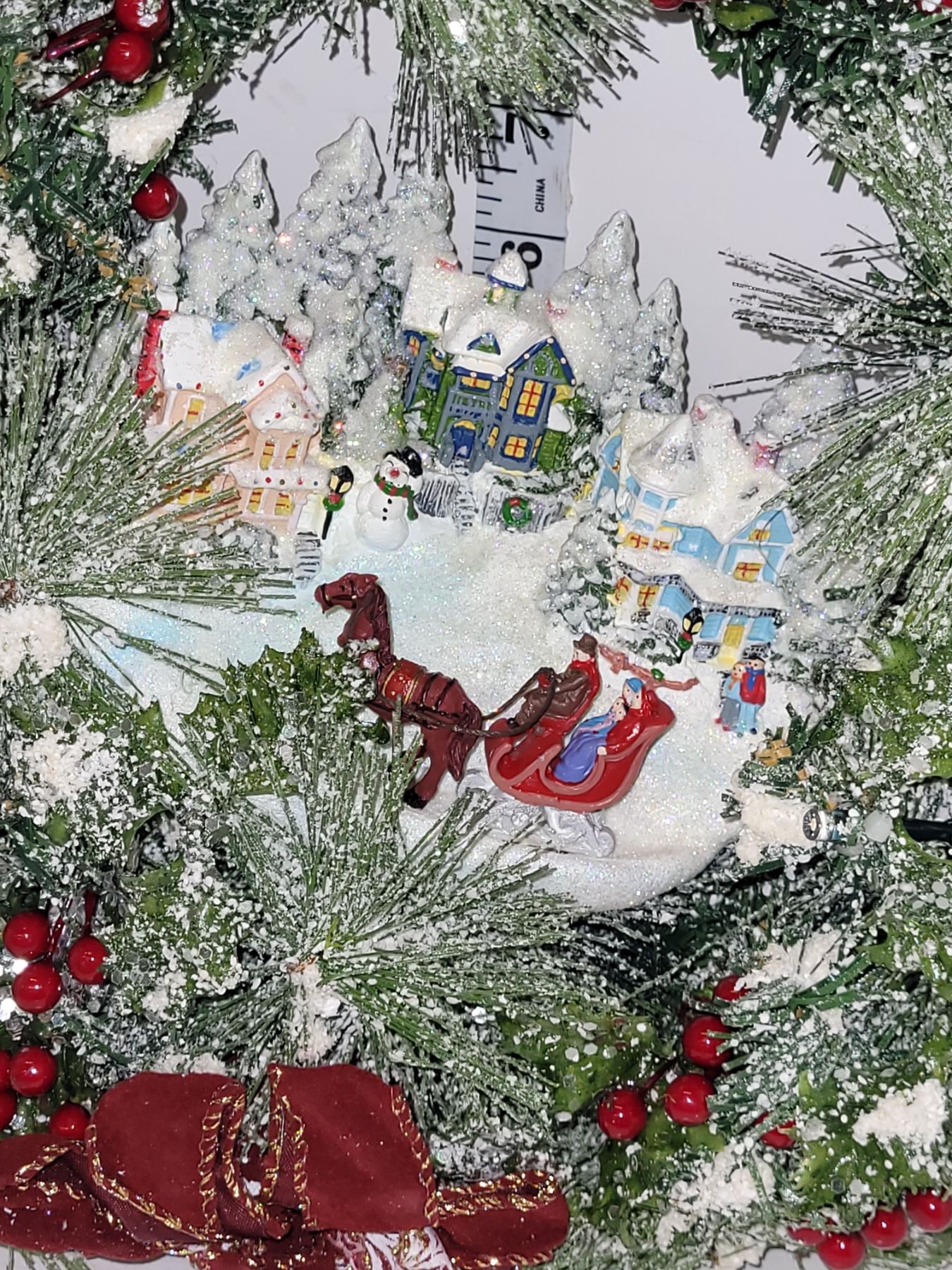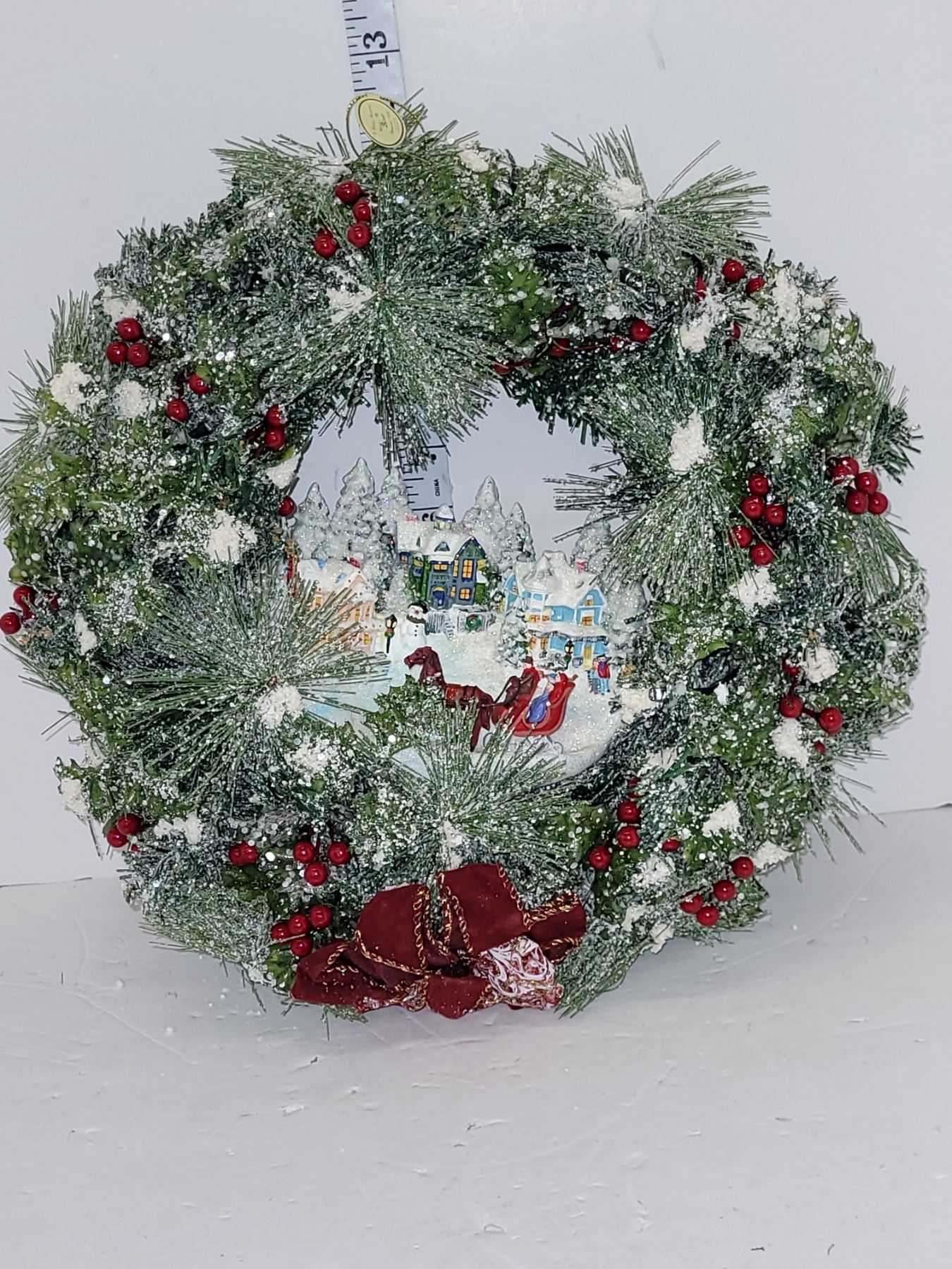 Thomas Kinkade Deck The Halls Light Up and Musical Wreath in Box