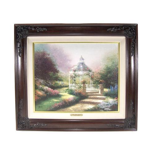 Up for bid is a beautiful painting by Thomas Kinkade, called "Hidden Gazebo". The painting comes in an rich wood frame and also comes with a Certificate of Limitation & Authenticity. This painting would give a classy feel to any home or residence. Make sure to check out all the pictures!
