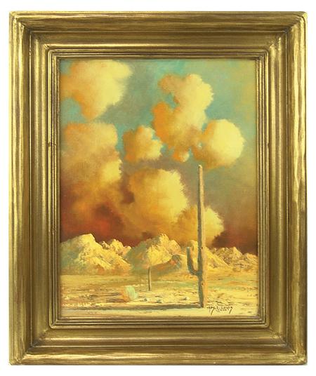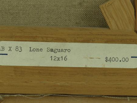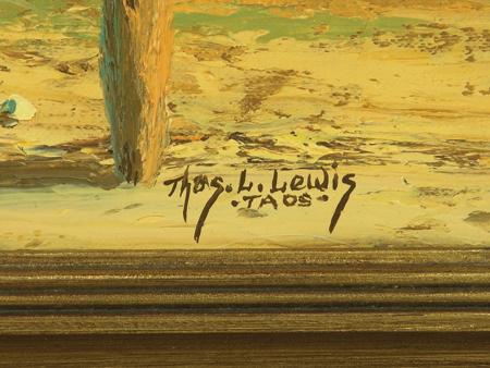 Circa 1976, Signed original oil on canvas "Lone Saguaro." Very good condition, signed "Thos. L. Lewis, Taos." 16" x 12" (22" x 17")