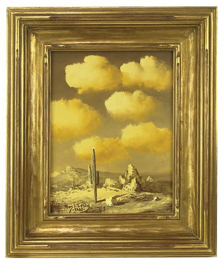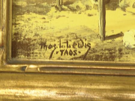 Circa 1978, Signed original oil on canvas "Golden Glow." Very good condition, signed "Thos. L. Lewis, Taos." 12" x 9" (18" x 15")
