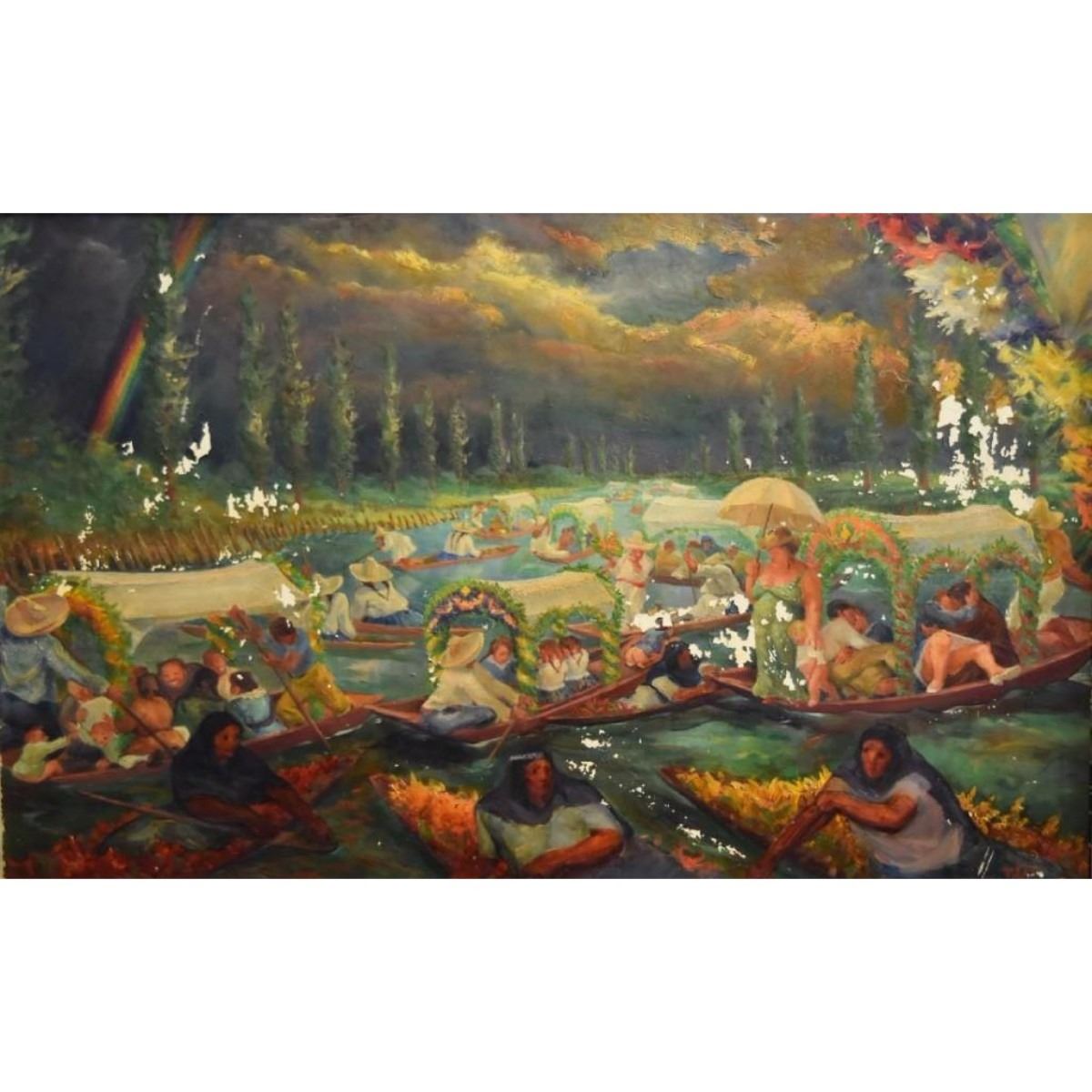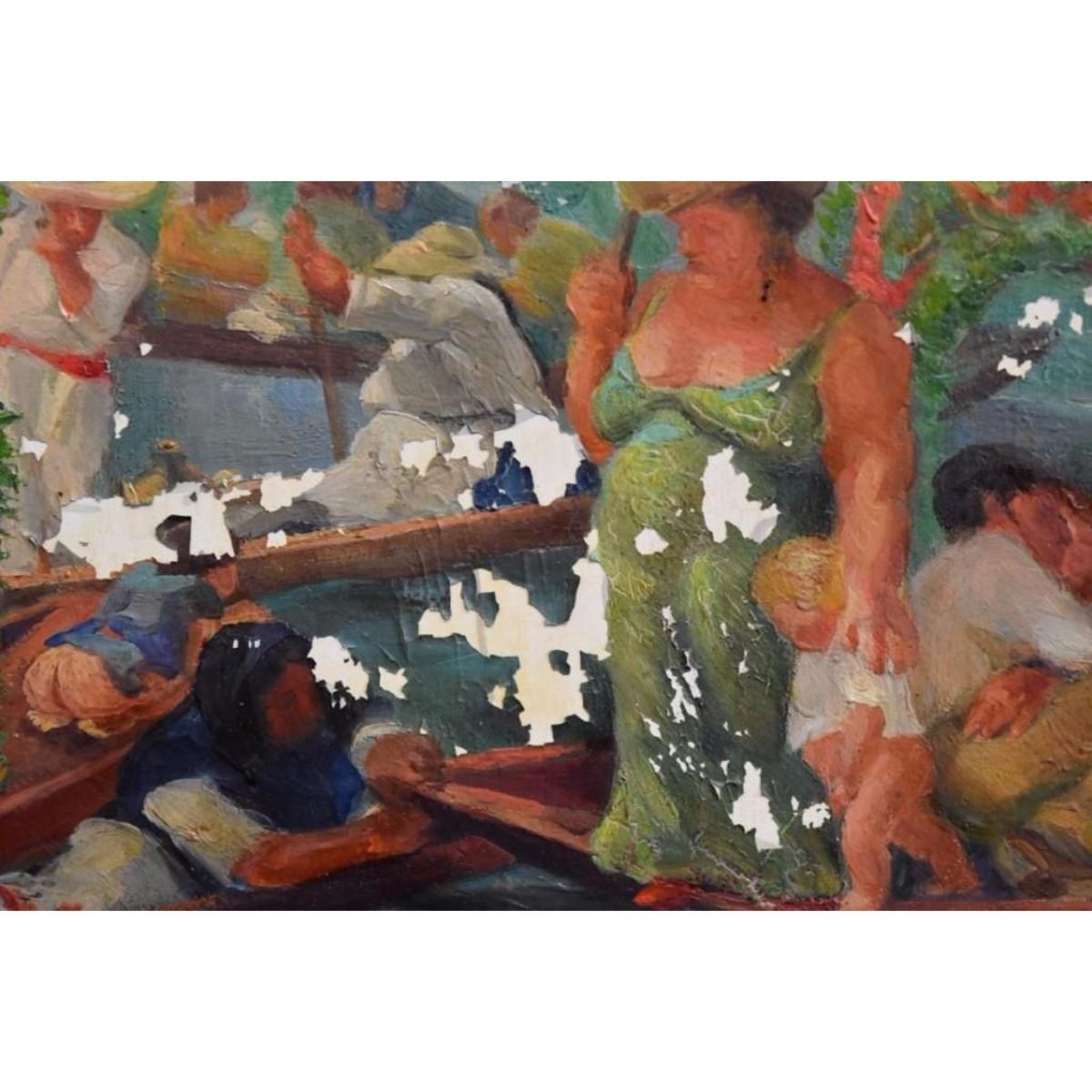 Oil on tin. Bank Holiday. Signed l.r. Having original label on reverse; 15in. X 24in.