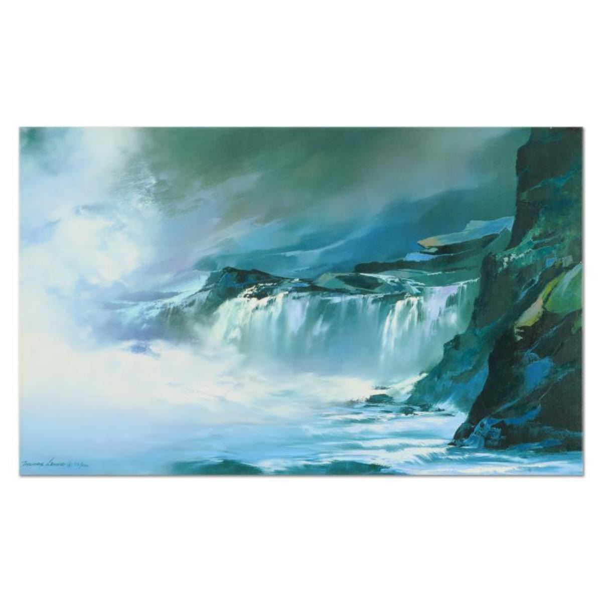 "Big Island Surf" is a hand embellished limited edition giclee on stretched canvas by Thomas Leung, numbered 26/100 and hand signed by the artist. Includes Letter of Authenticity. Measures approx. 28.5" x 17.5" (image). Reference #: 236609