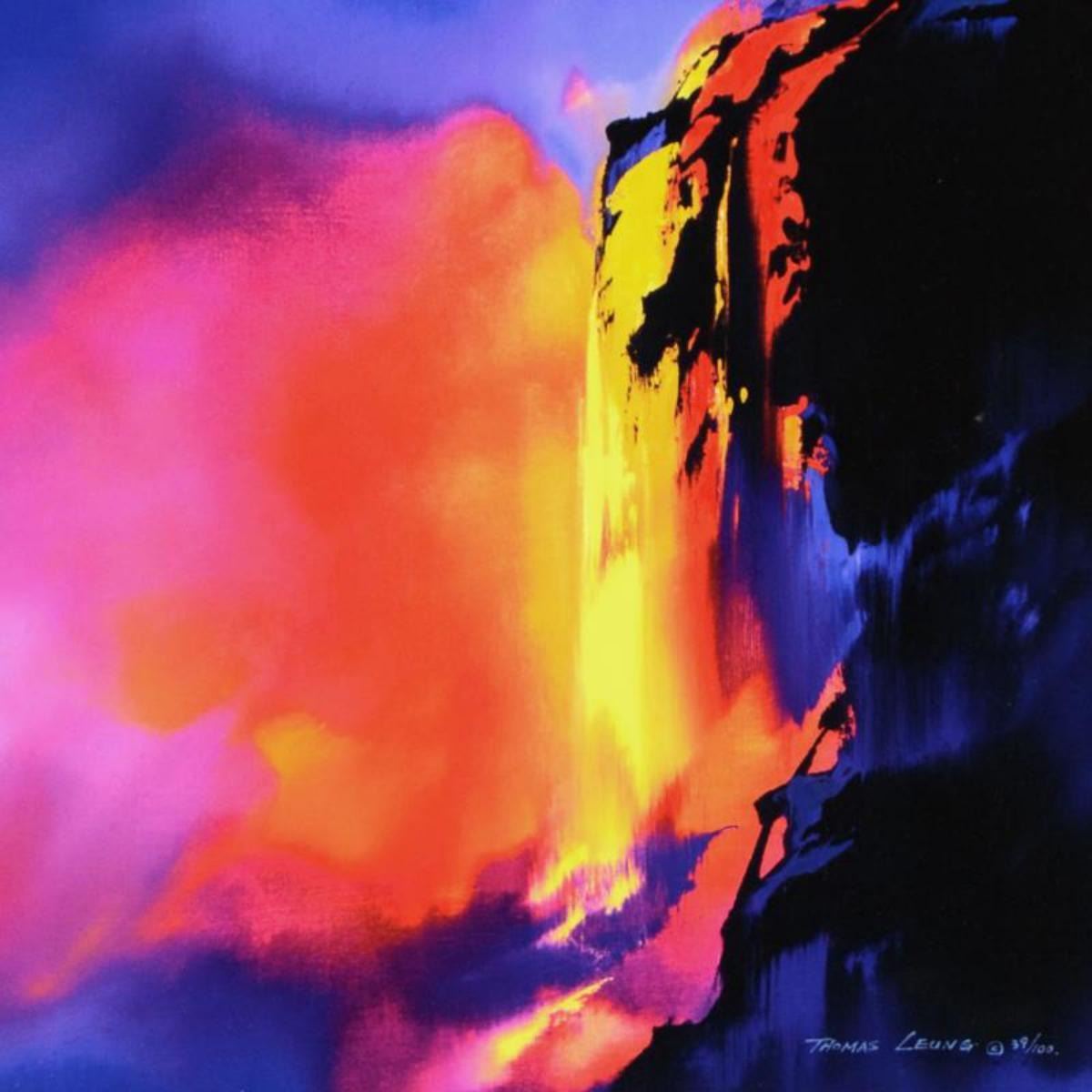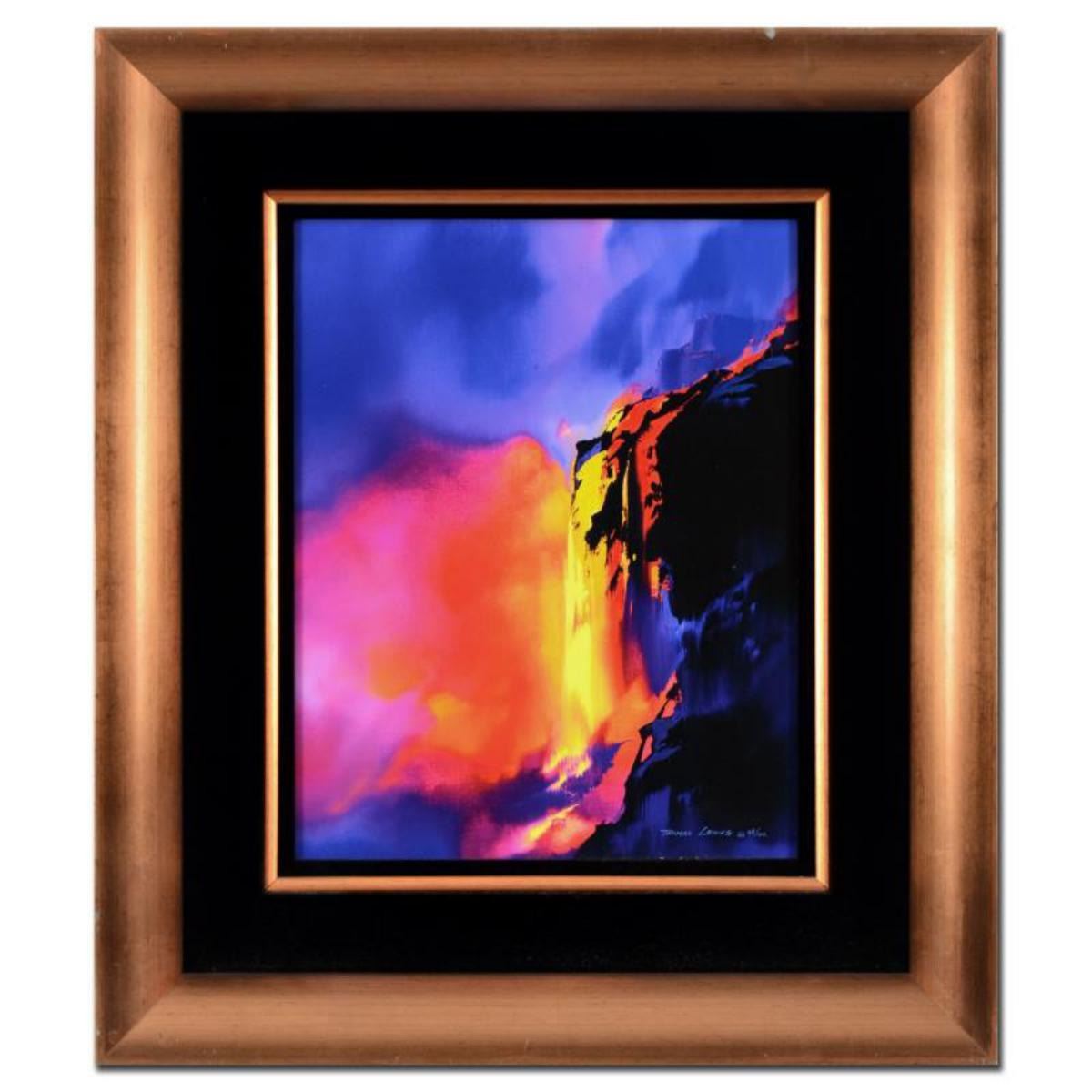 "Fire Cliffs" is a hand embellished limited edition giclee on canvas by Thomas Leung, numbered 39/100 and hand signed by the artist. This piece comes framed. Includes Letter of Authenticity. Measures approx. 23.5" x 27.5" (frame), 13.5" x 17.5" (image). ** Please note: there is noticeable wear on the corners and edges of the frame. ** Reference #: 236602