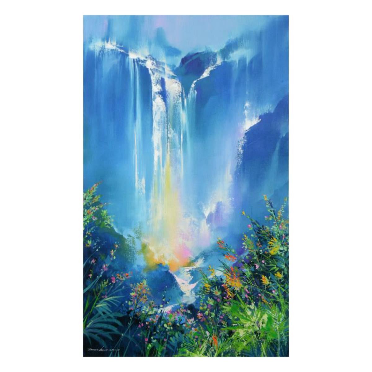 "Green Forest Falls" is a limited edition giclee on canvas by Thomas Leung, numbered and hand signed by the artist. Includes Letter of Authenticity. Measures approx. 36" x 60" (image). Reference #: 235670.