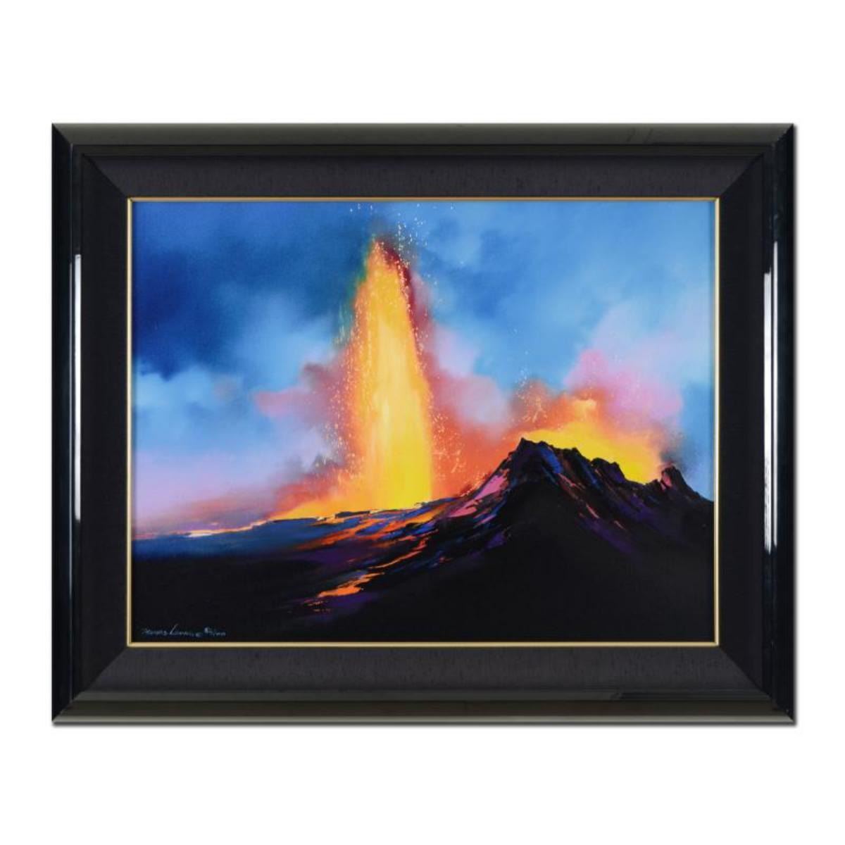 "Pele at Play" is a hand embellished limited edition giclee on canvas by Thomas Leung, numbered 82/100 and hand signed by the artist. This piece comes framed. Includes Letter of Authenticity. Measures approx. 36" x 29" (frame), 28.5" x 21" (image). ** Please note: there is wear on the corners and edges of the frame. ** Reference #: 236591