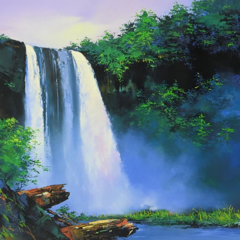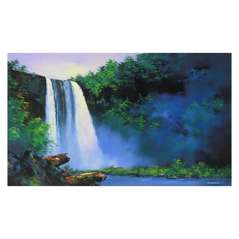 "Wailua Falls" is a hand embellished limited edition giclee on canvas by Thomas Leung, numbered 28/100 and hand signed by the artist. Includes Letter of Authenticity. Measures approx. 44" x 27" (image).