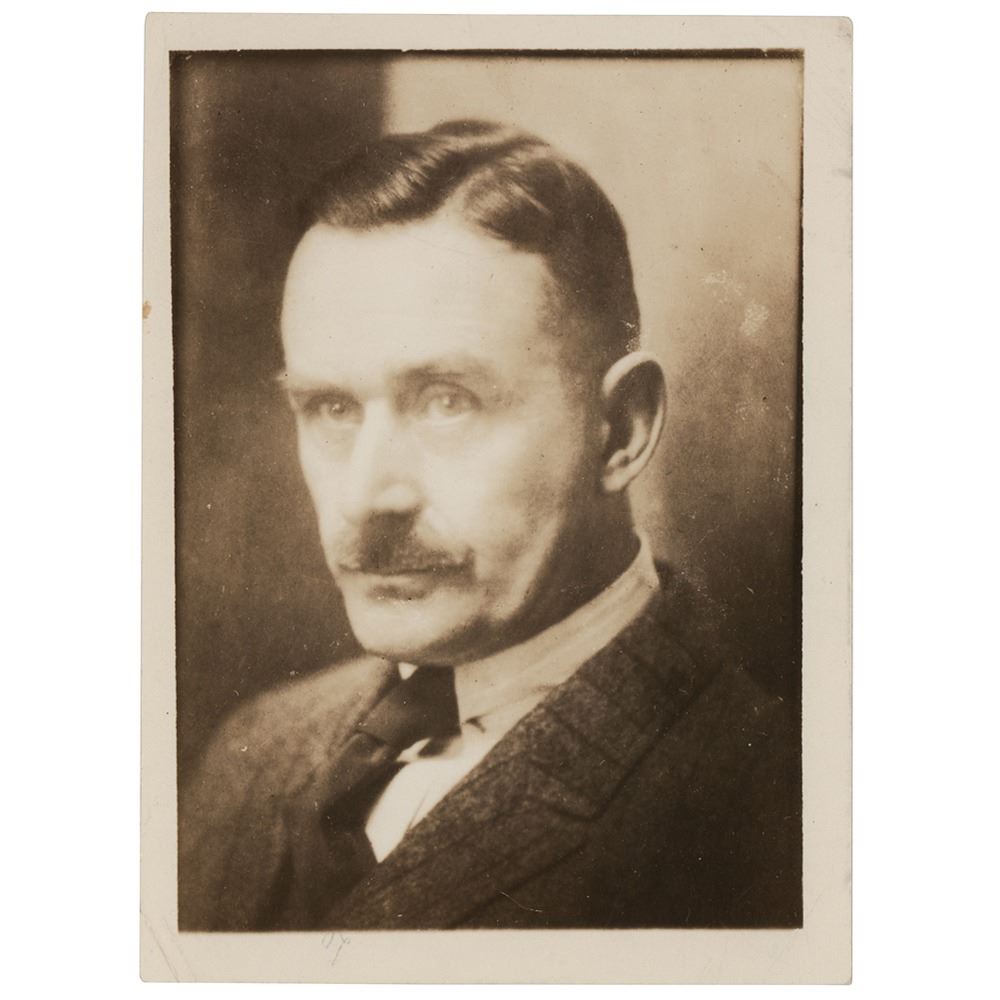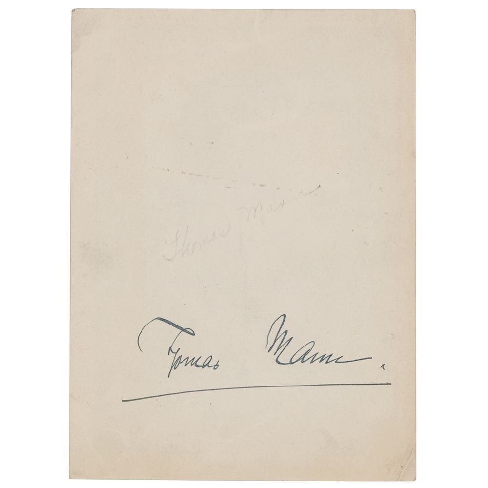 Vintage glossy 5 x 6.75 photo of Thomas Mann, who has signed on the reverse in fountain pen. In very good condition, with overall creasing.