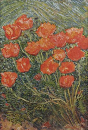 Thomas Mascione (Deceased). "Santa Fe Poppies". 43 ½” x 29 ½”. Oil on Canvas. A major work by this Santa Fe icon. (est $6,000-8,000).