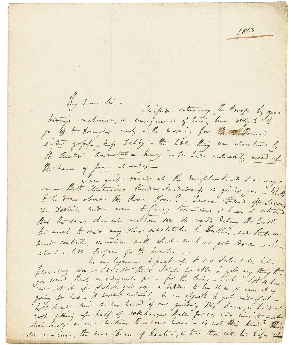 Famed Irish poet and songwriter (1779–1852) best known for such verses as “The Last Rose of Summer” and “Believe Me If All These Endearing Young Charms.” ALS, one page both sides, 7.5 x 9.25, no date but circa 1813. Moore writes a London publisher. In part: “I am quite vexed at the disappointment and annoyance that Stephenson’s blunder headedness is giving you. What’s to be done about the Rose Tree?…I now see it would delay the work too much to send any other substitute to Dublin, and that we must content ourselves with what we have got done.” Intersecting folds, scattered soiling, and an area of paper loss to the integral second page, otherwise fine condition. Accompanied by an old catalog description and a small unsigned portrait.