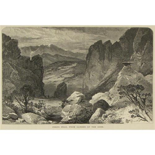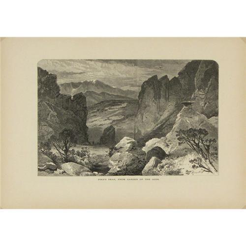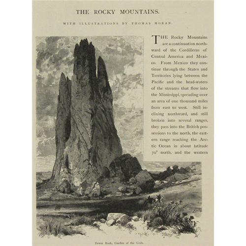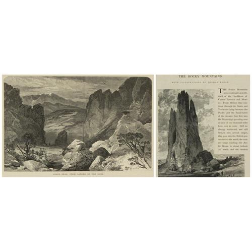 Thomas Moran (1837-1926) 2 Engravings from Picturesque America, "Pikes Peak From Garden of the Gods", image size 6 1/8" x 8 3/4", "Tower Rock, Garden of the Gods", image size 7 7/8" x 6 1/8", signed in plate