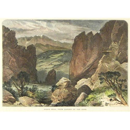Thomas Moran (1837-1926) Steel Engraving, "Pikes Peak, From Garden of the Gods", image size 6 1/8" x 8 3/4", signed in plate