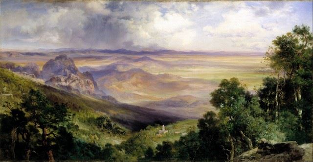 Artist: Thomas Moran - Title: Valley of Cuernavaca - Medium: Fine Art Giclee on Canvas - Image Size: Approximately 16.5 inches x 32 inches - Framed: Unframed on Unstretched Canvas - Biography: Thomas Moran (1837-1926), American painter and graphic artist, specialized in landscape painting. His gigantic canvases depict the grandeur and immensity of the Far West.