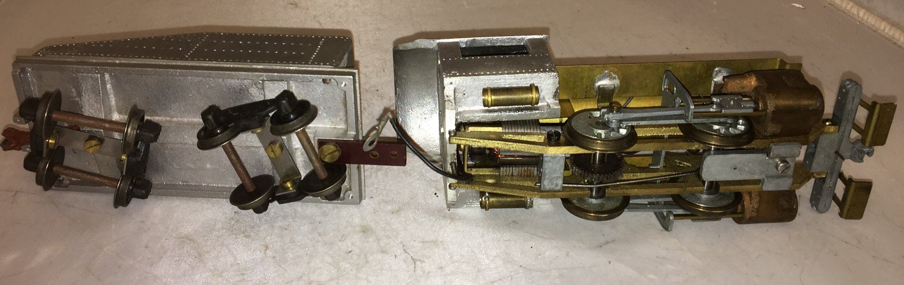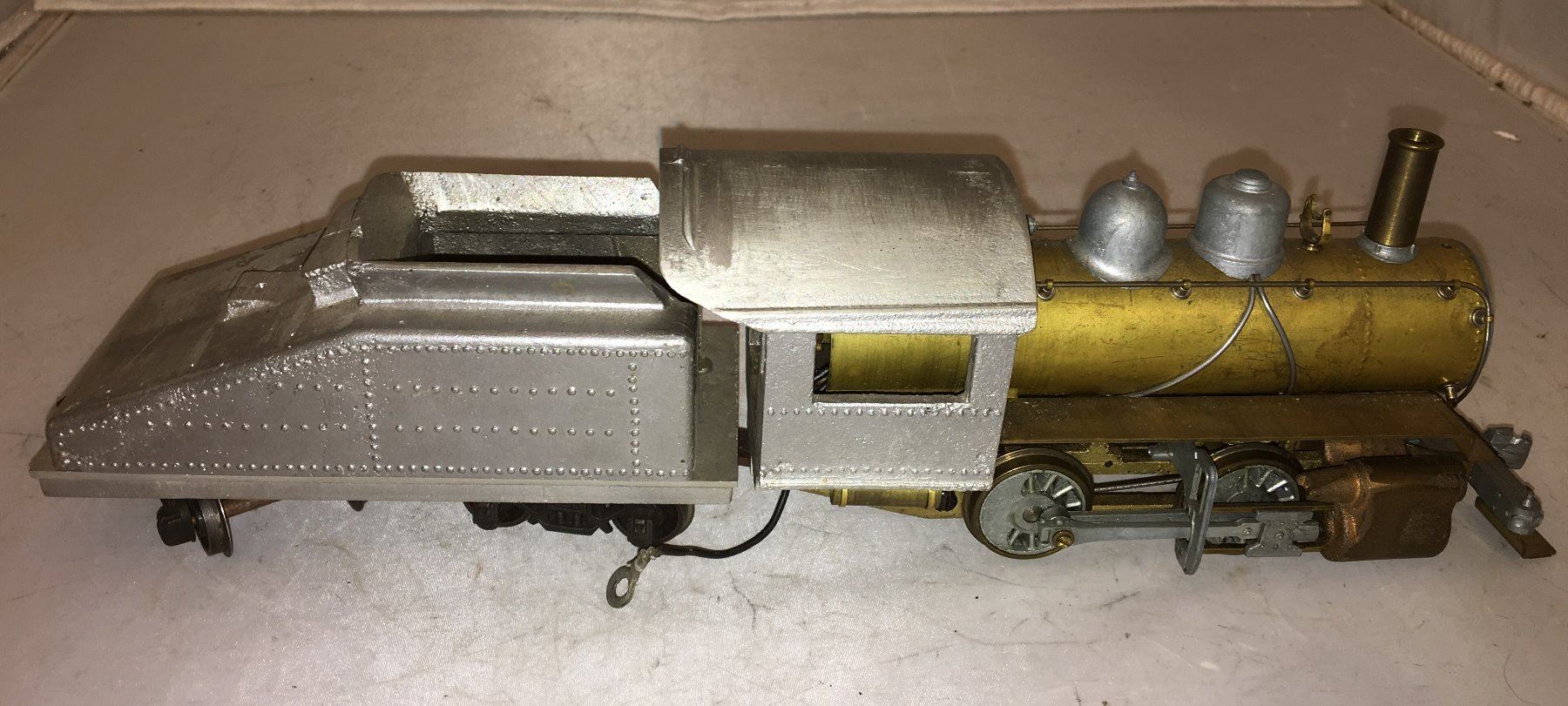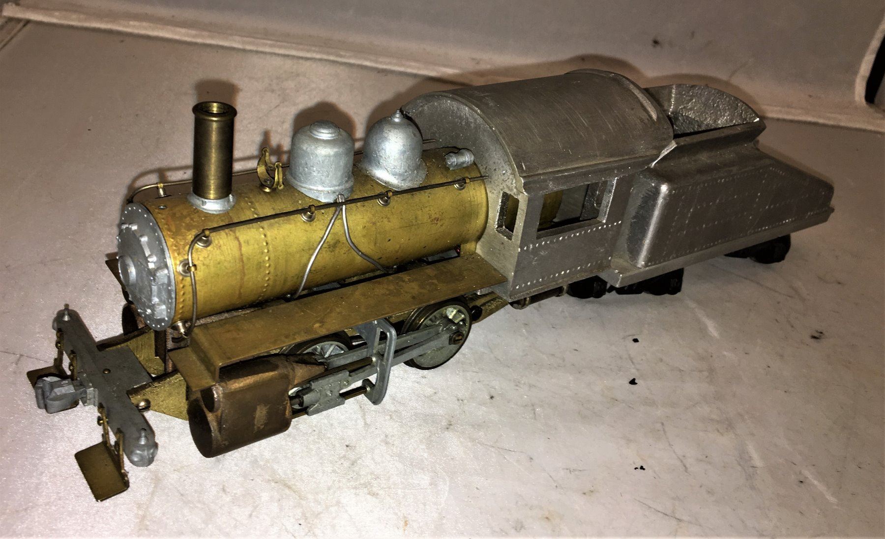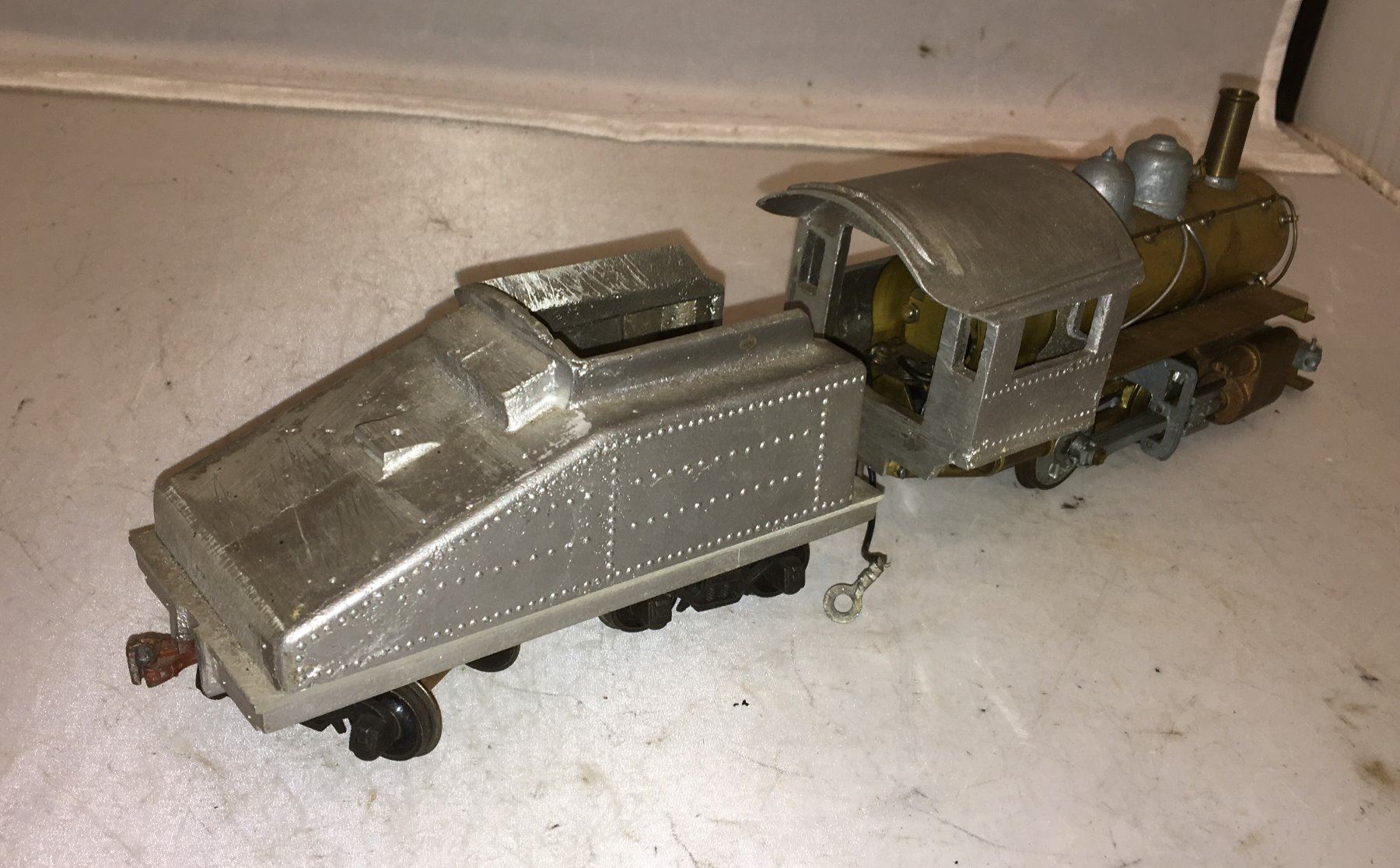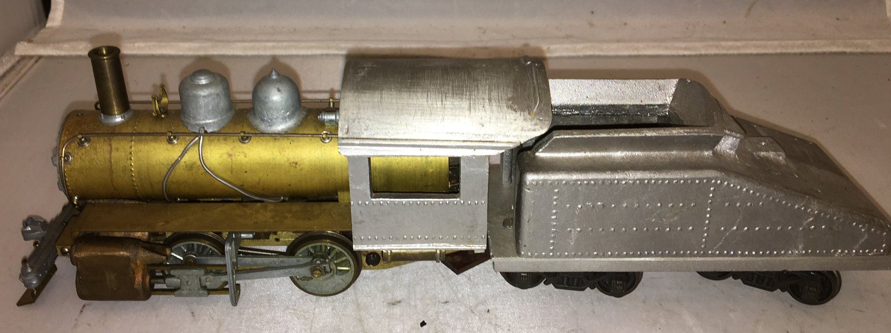 Thomas O scale 0-4-0 steam engine and tender. Powered, brass and cast metal construction. Very good condition.