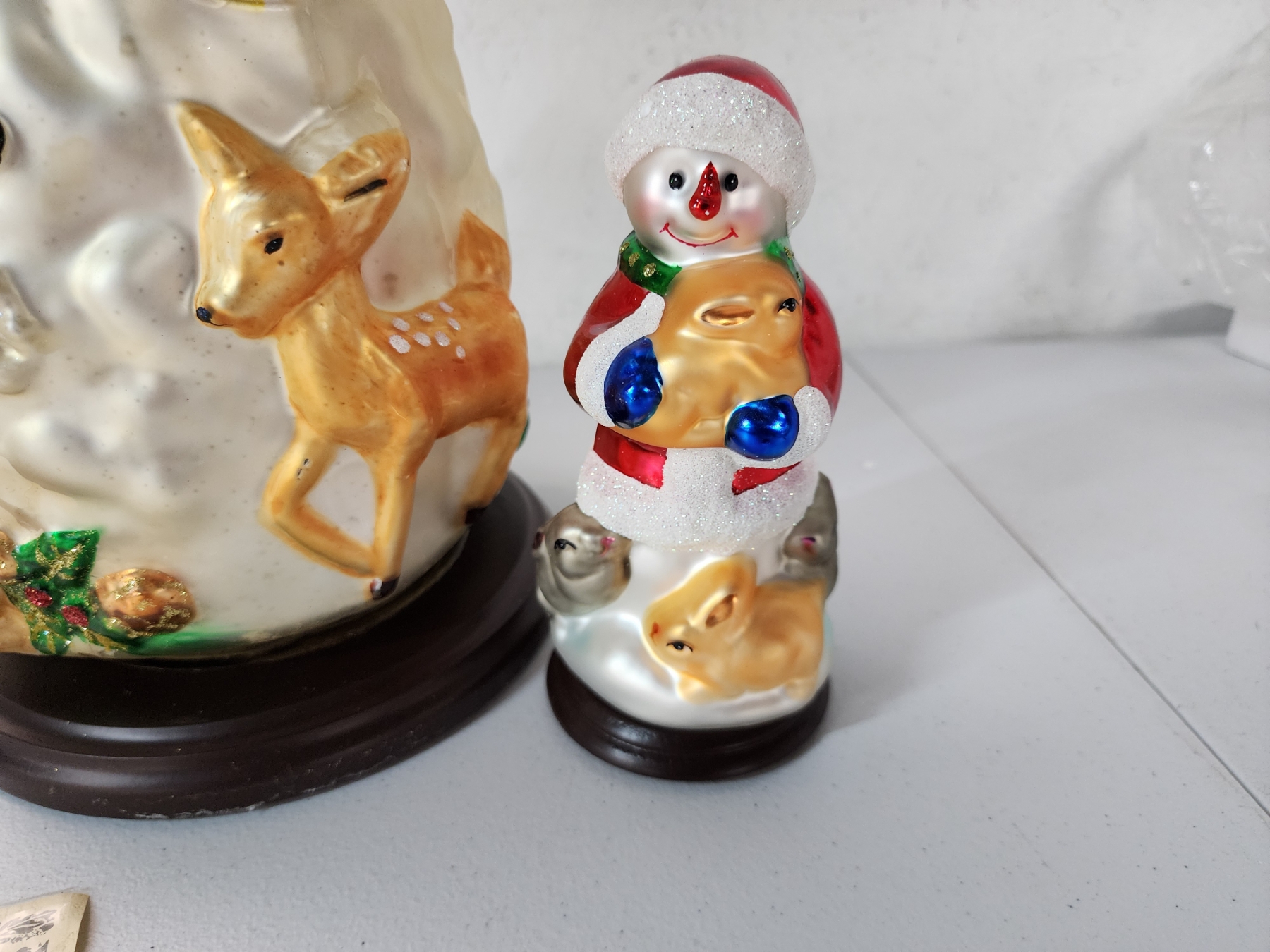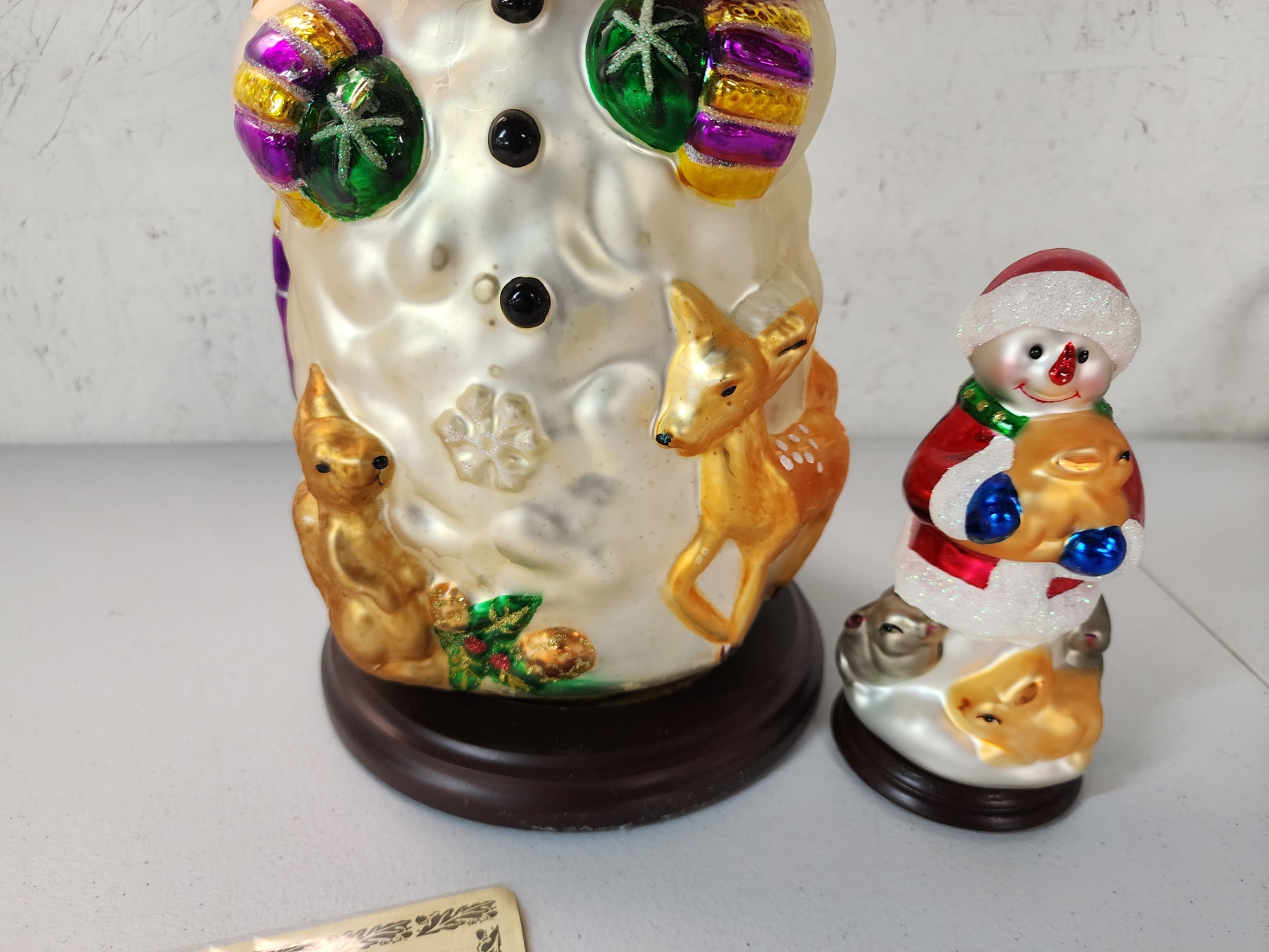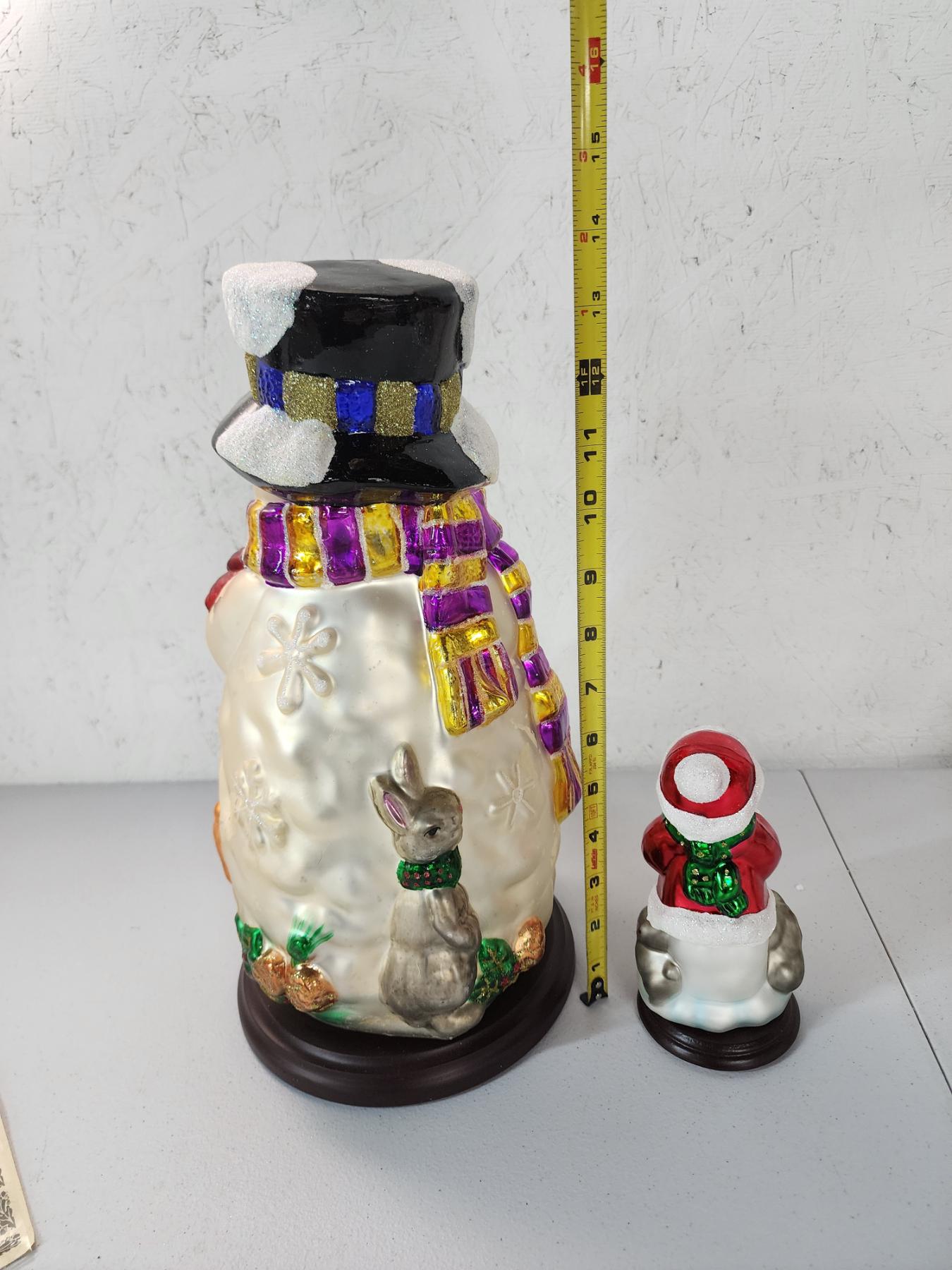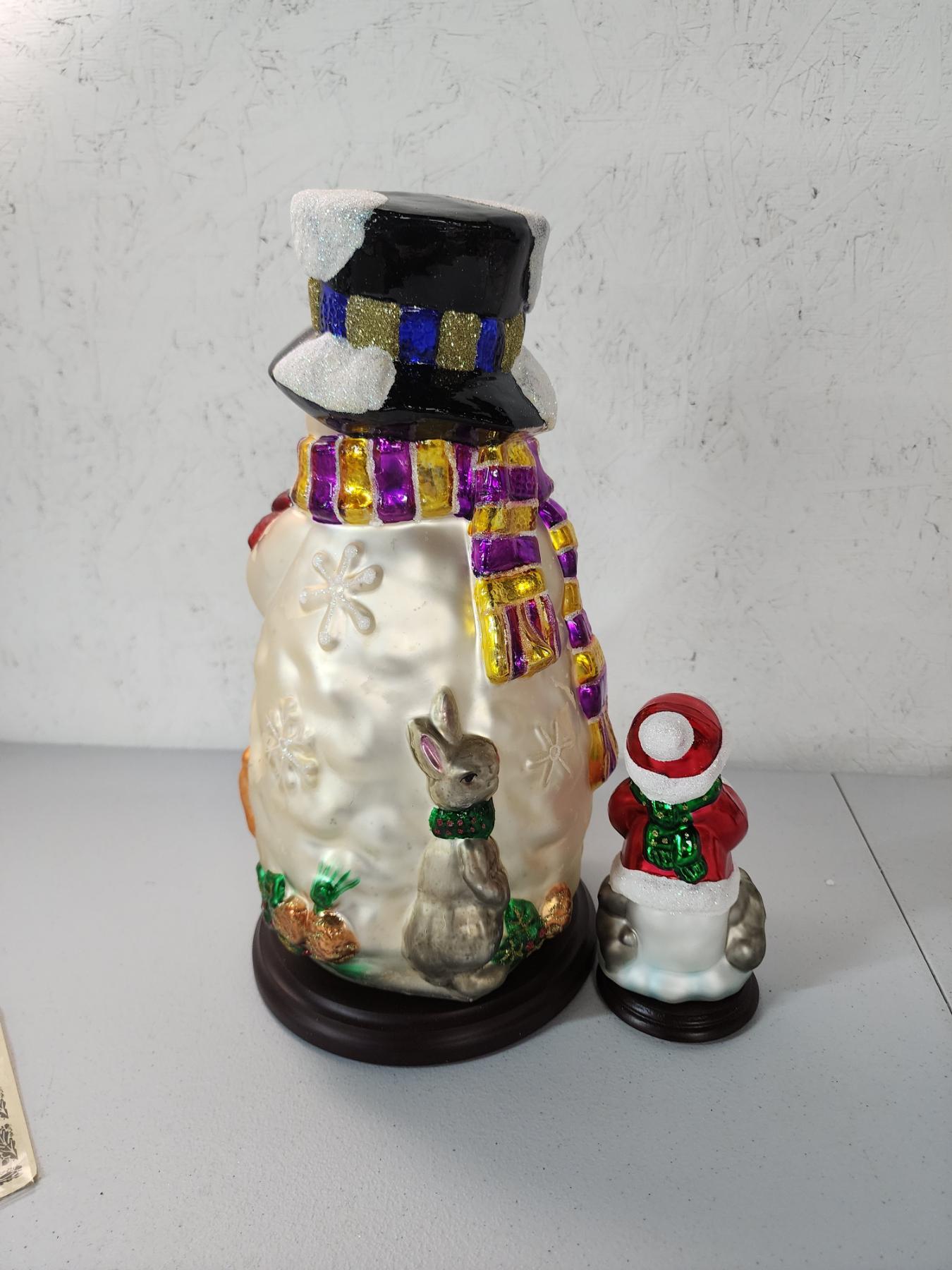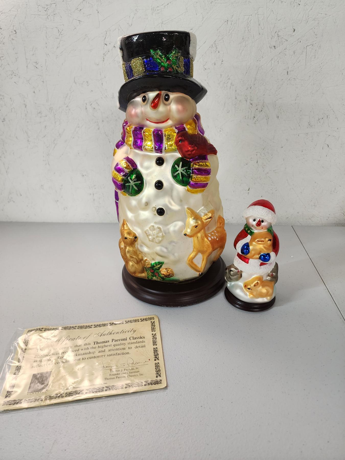 Thomas Pacconi Classics 30 Year Anniversary - 2 Blown Glass Snowman w/ Wooden Base - Great Condition!