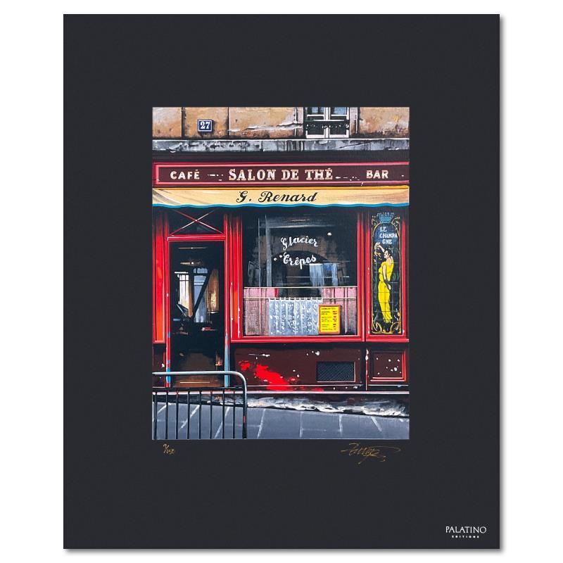 "Salon de The" is a limited edition serigraph on paper by Thomas Pradzynski (1951-2007), numbered 9/150 and hand signed by the artist. Includes Letter of Authenticity. Measures approx. 17" x 15" (border), 10.5" x 9" (image).