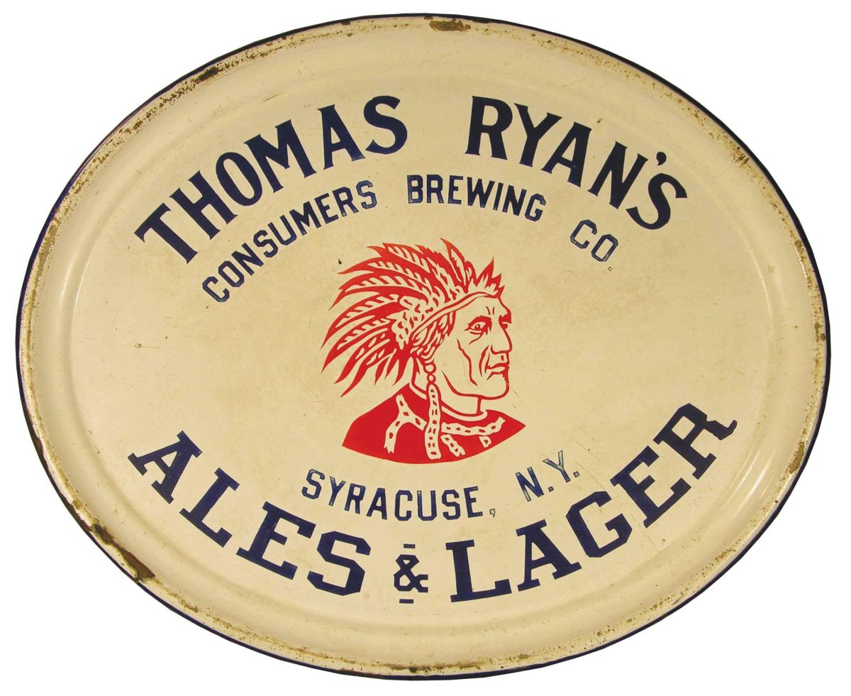 Thomas Ryan's Consumers Brewing Company Porcelain Serving Tray, Syracuse, NY. Some fading and edgeware otherwise good condition. 16 X 13 inches. Start Price $40