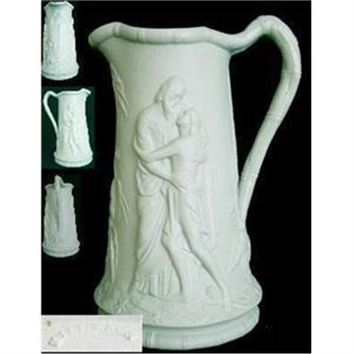 Thomas Till & Sons Stoneware Jug Decorated With Figurines And Foliage The Handle Rim And Base Shaped As Bamboo c1850-61