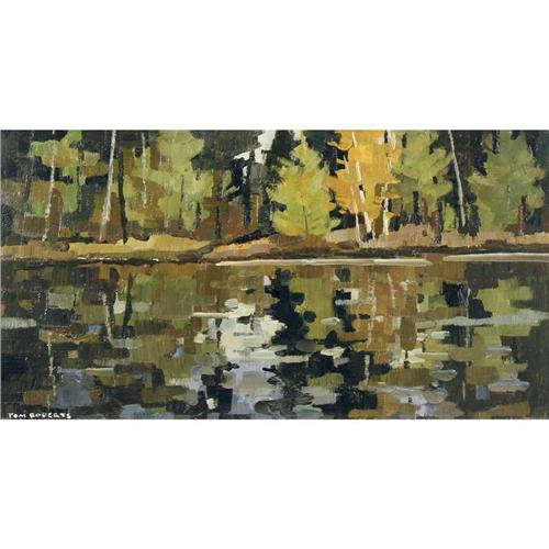 Canadian OSA, RCA [1908-1998] TAMARACK POOL oil on board 12 x 22 in. (30.5 x 55.9 cm) signed & titled